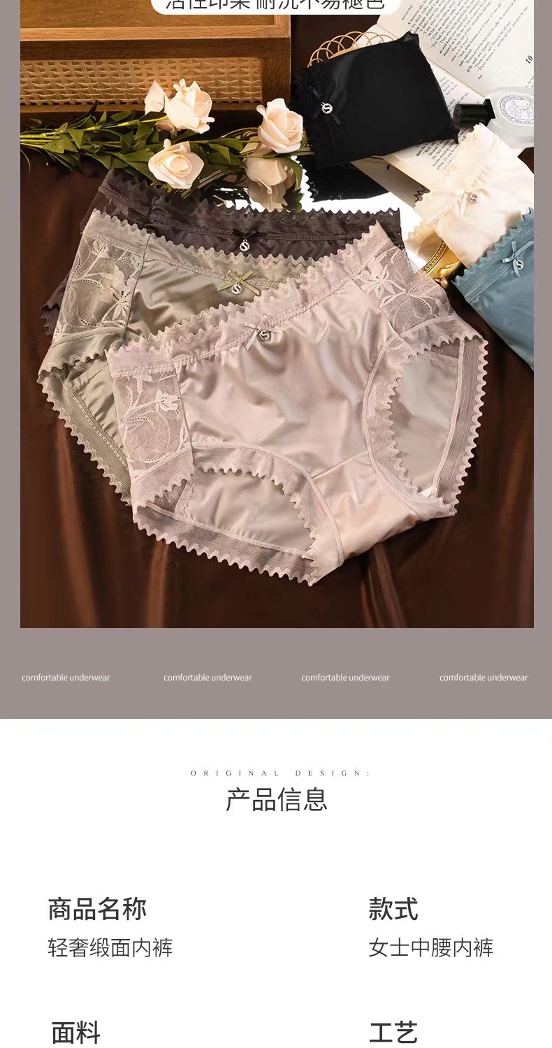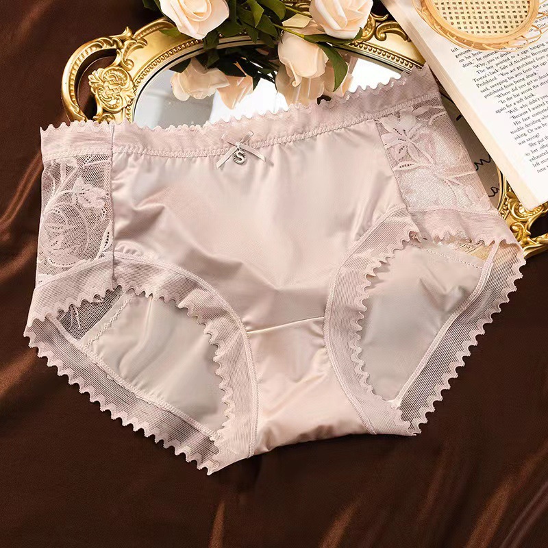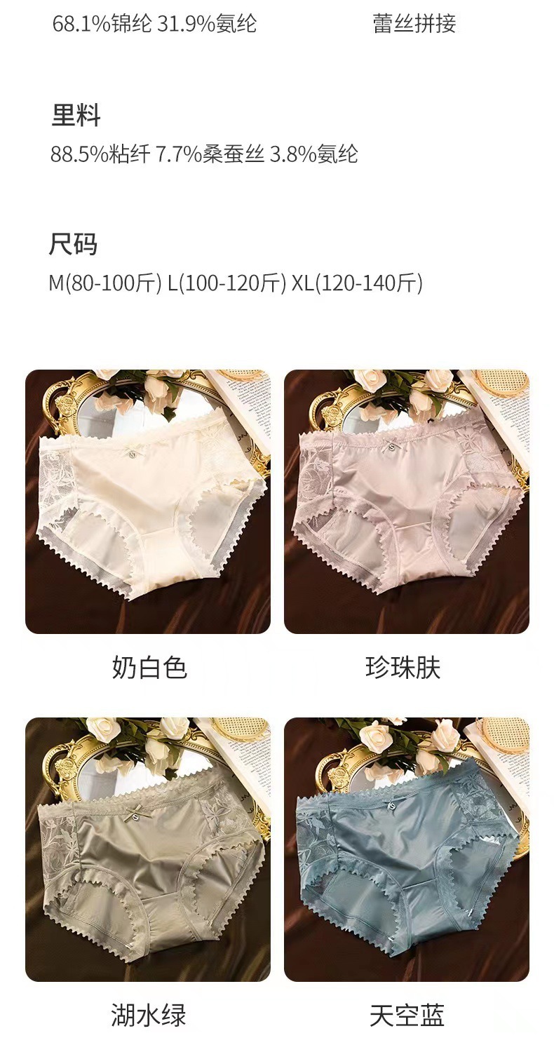 새로운 통기성 단조 표면 중간 허리 레이스 속옷 여성 브리프 실크 같은 질감 뽕나무 실크 가랑이 도매스토어 가기