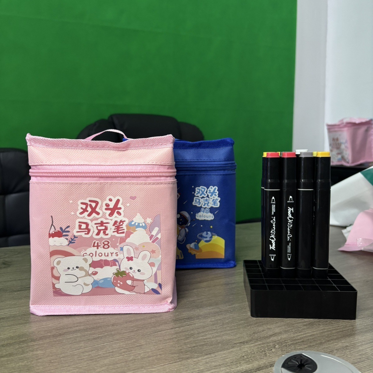 터치 더블 헤드 마커 저장 가방 학생 블랙 수채화 펜 가방 핸드백 문구 옥스포드 천 가방을 설정할 수 있습니다스토어 가기