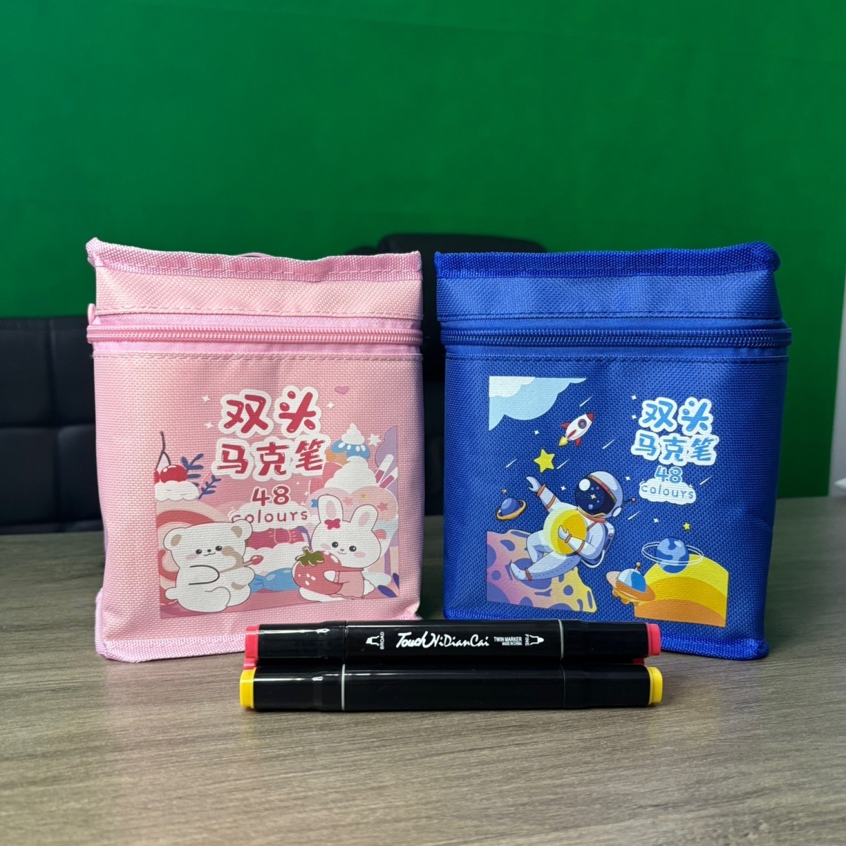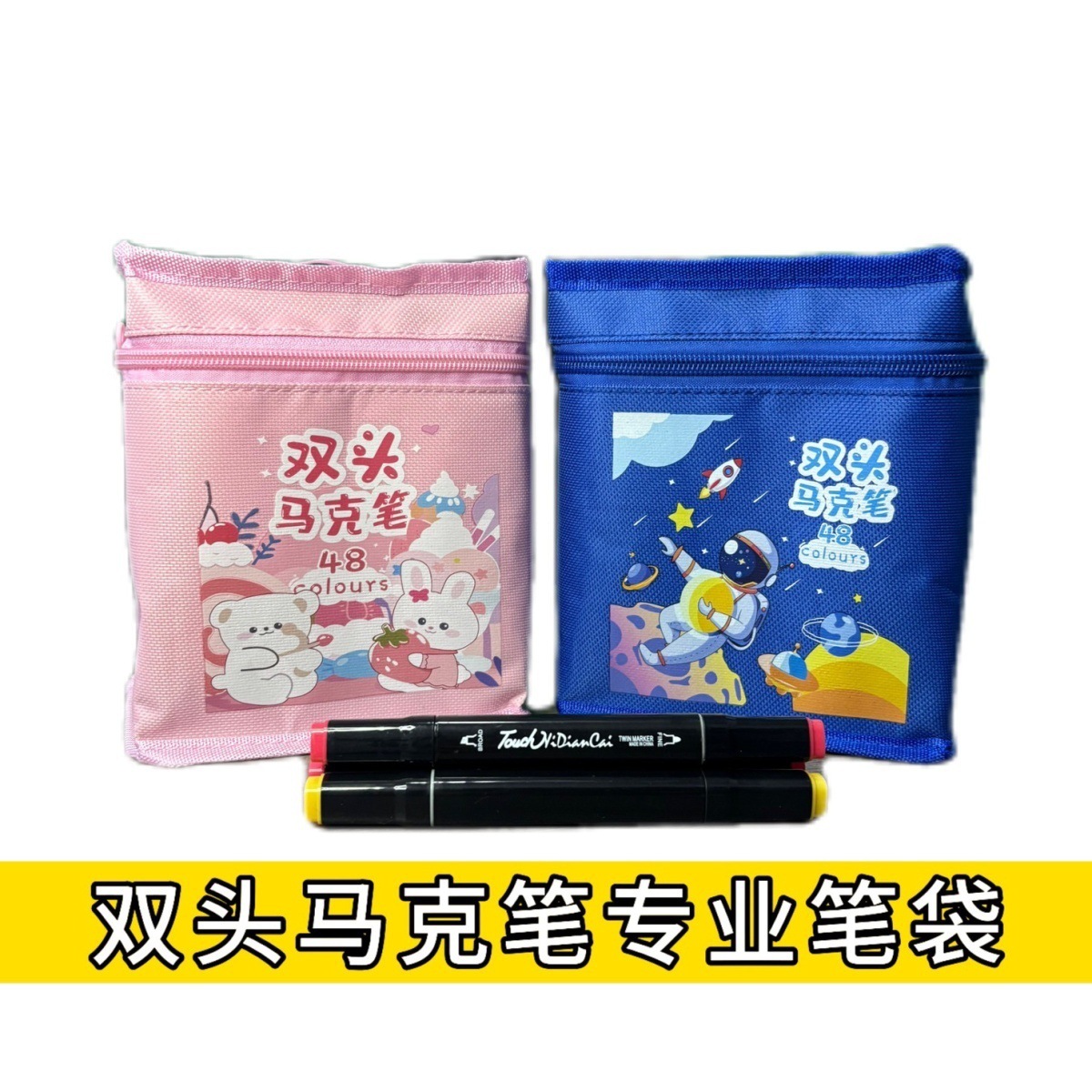 터치 더블 헤드 마커 저장 가방 학생 블랙 수채화 펜 가방 핸드백 문구 옥스포드 천 가방을 설정할 수 있습니다