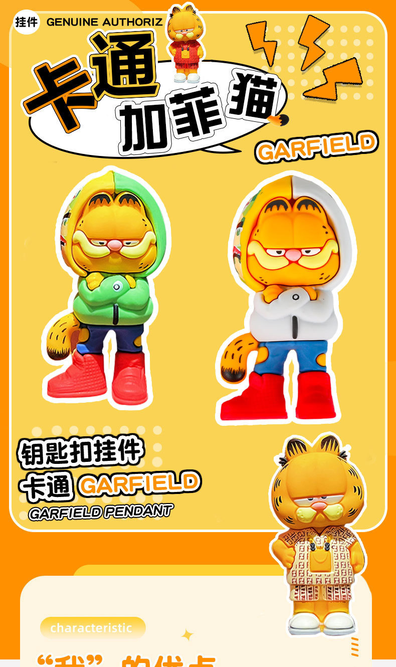 창조적 인 가필드 키 체인 원피스 고양이 펜던트 자동차 가방 펜던트 블라인드 가방 키 체인 작은 선물 도매스토어 가기