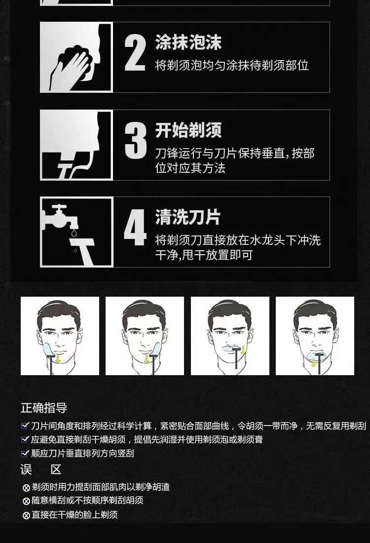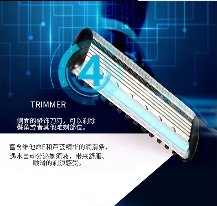 • 블레이드 4개 + 폼, 청소용 브러시 + 면도 크림이 포함된 업그레이드 버전(손잡이 없음)