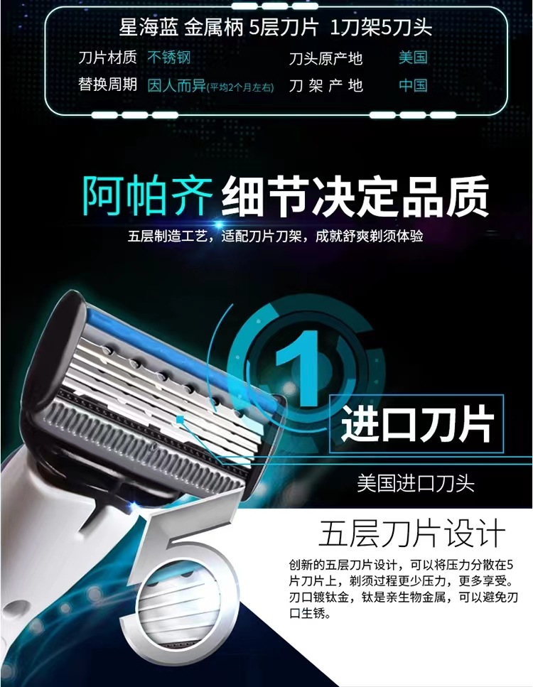 아파치 5 층 수동 면도날 헤드 아파치 남성용 면도기 5 층 블레이드