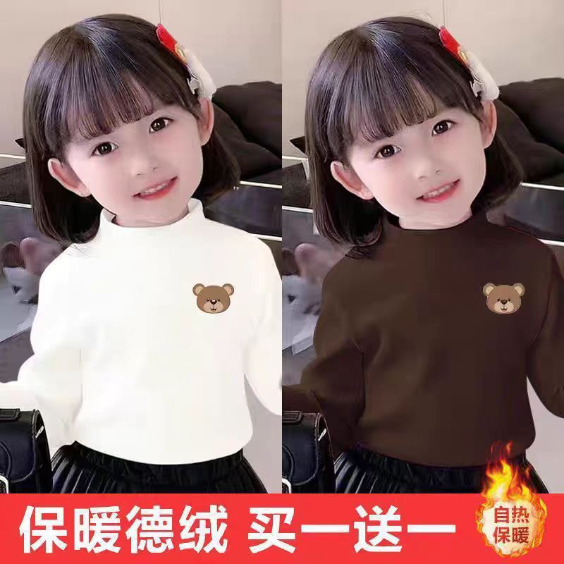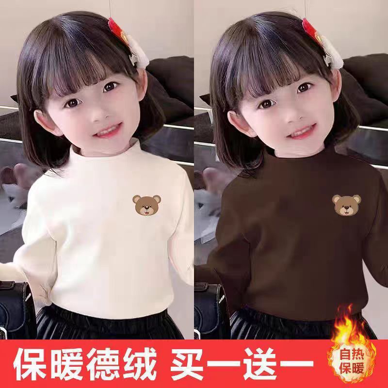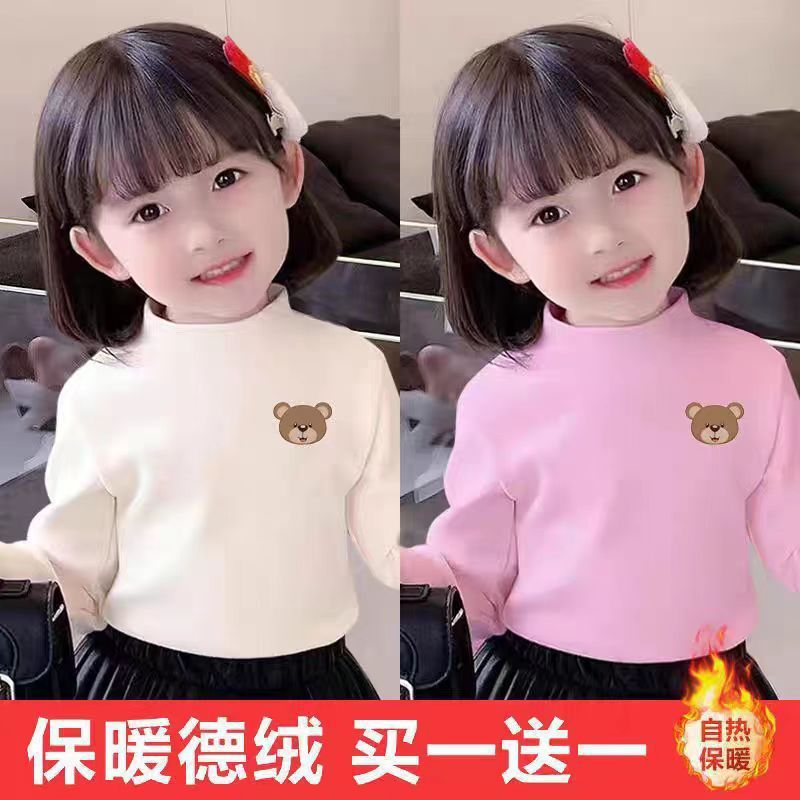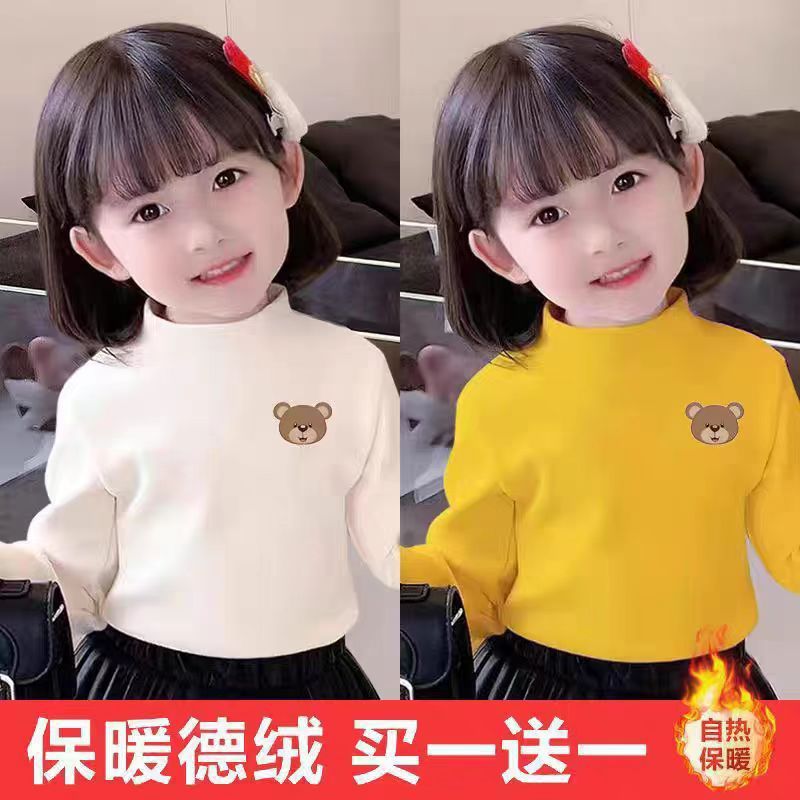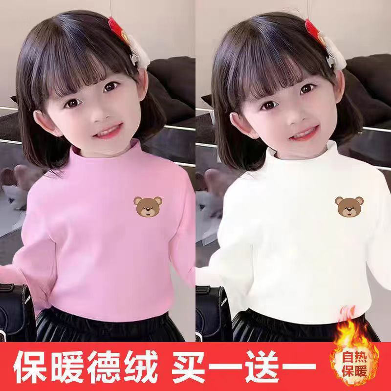 소녀의 가을과 겨울 따뜻한베이스 셔츠 어린이 벨벳 세미 하이 칼라 탑 걸스 가을과 겨울 패션 귀여운 긴 소매 내부 셔츠