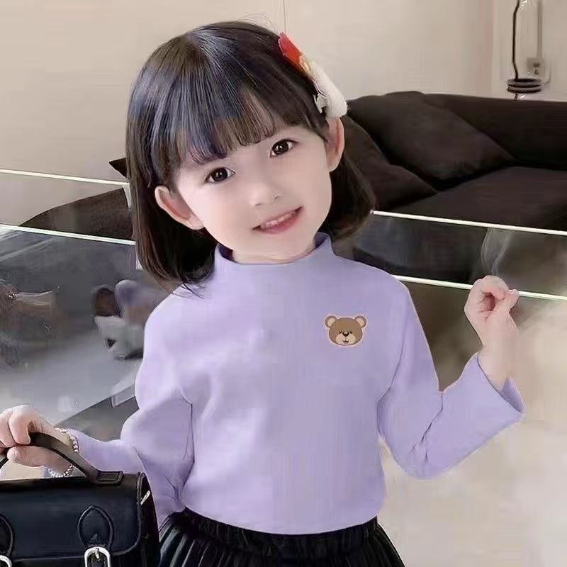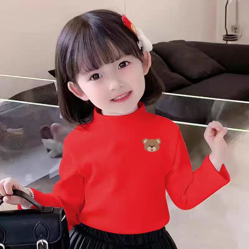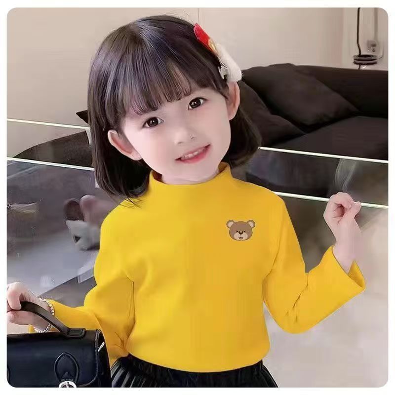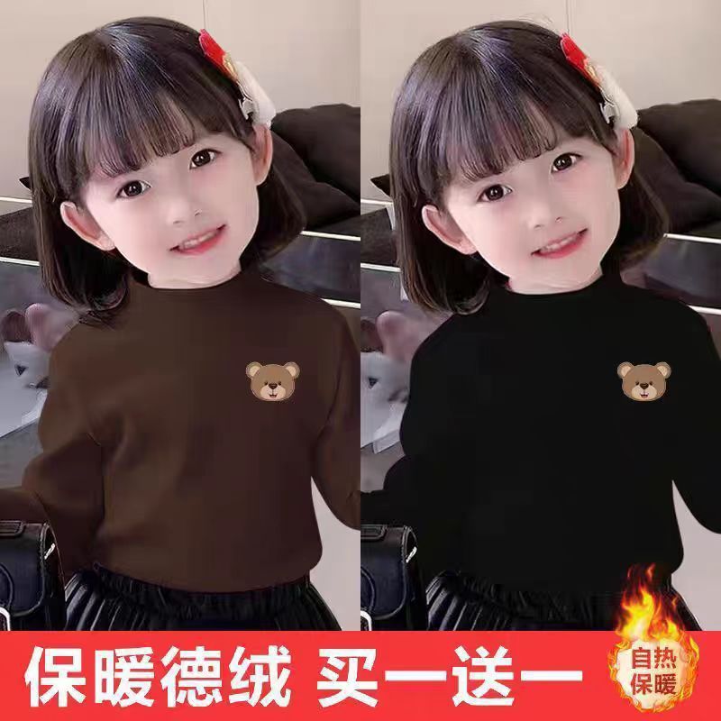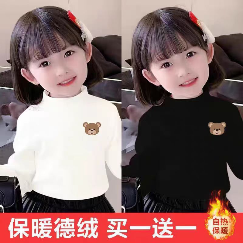 소녀의 가을과 겨울 따뜻한베이스 셔츠 어린이 벨벳 세미 하이 칼라 탑 걸스 가을과 겨울 패션 귀여운 긴 소매 내부 셔츠