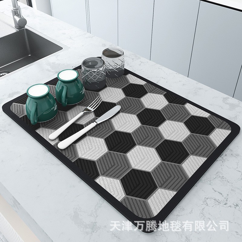 간단한 주방 배수 매트 가정용 Diatom 진흙 흡수성 매트 빠른 건조 미끄럼 방지 매트 커피 테이블 매트 불꽃 놀이 실린더 매트