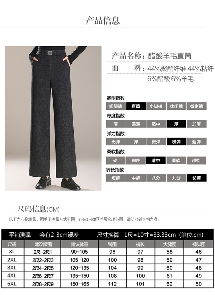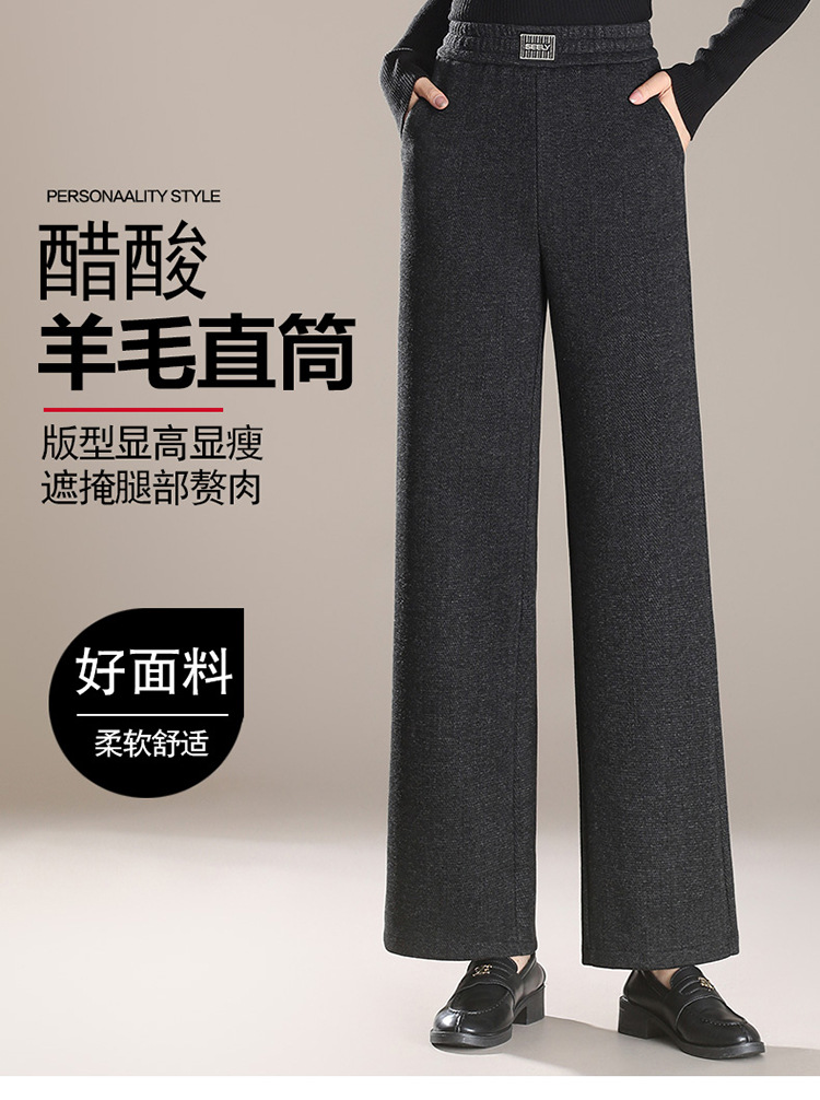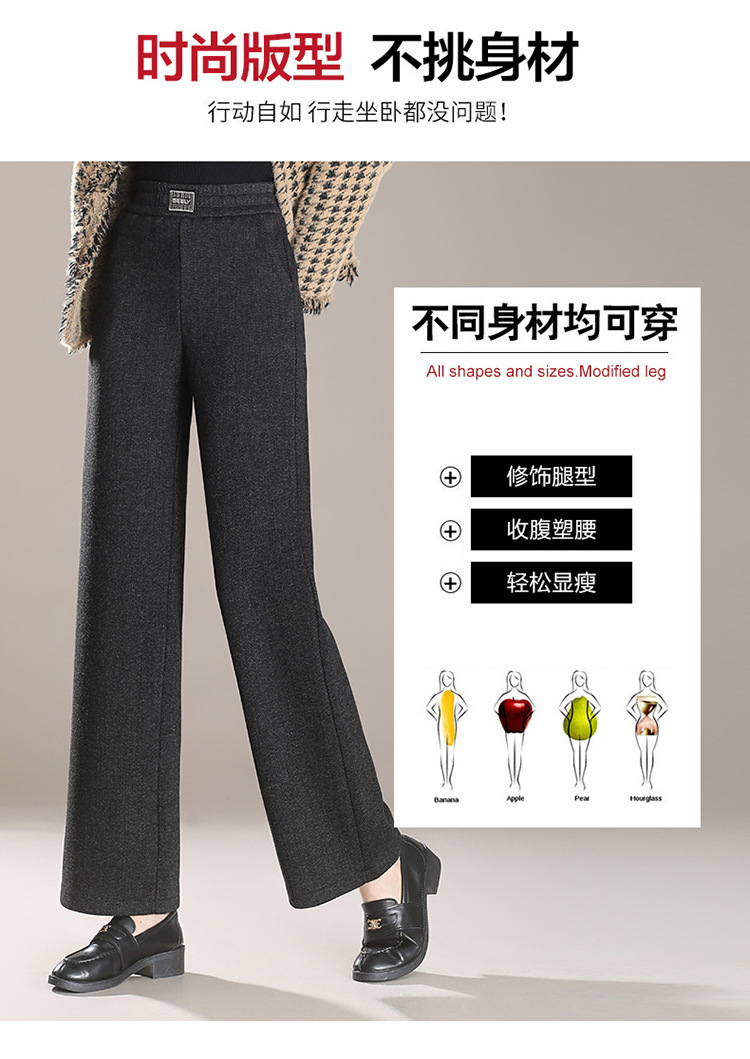 겨울 고급 모직 스트레이트 바지 높은 허리 슬림 캐주얼 투약 중년 및 노인 여성 바지 한국식 엄마 바지스토어 가기