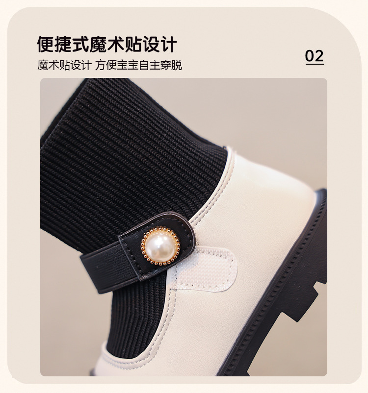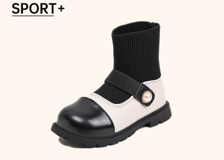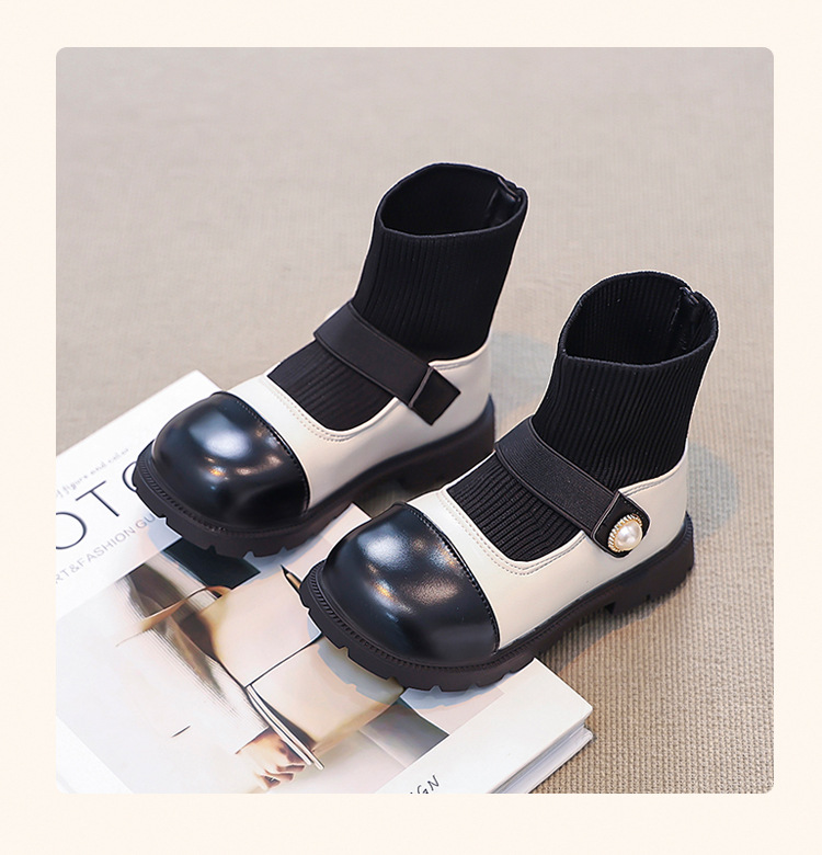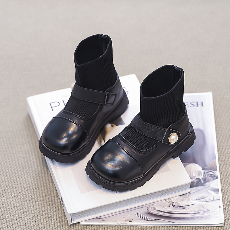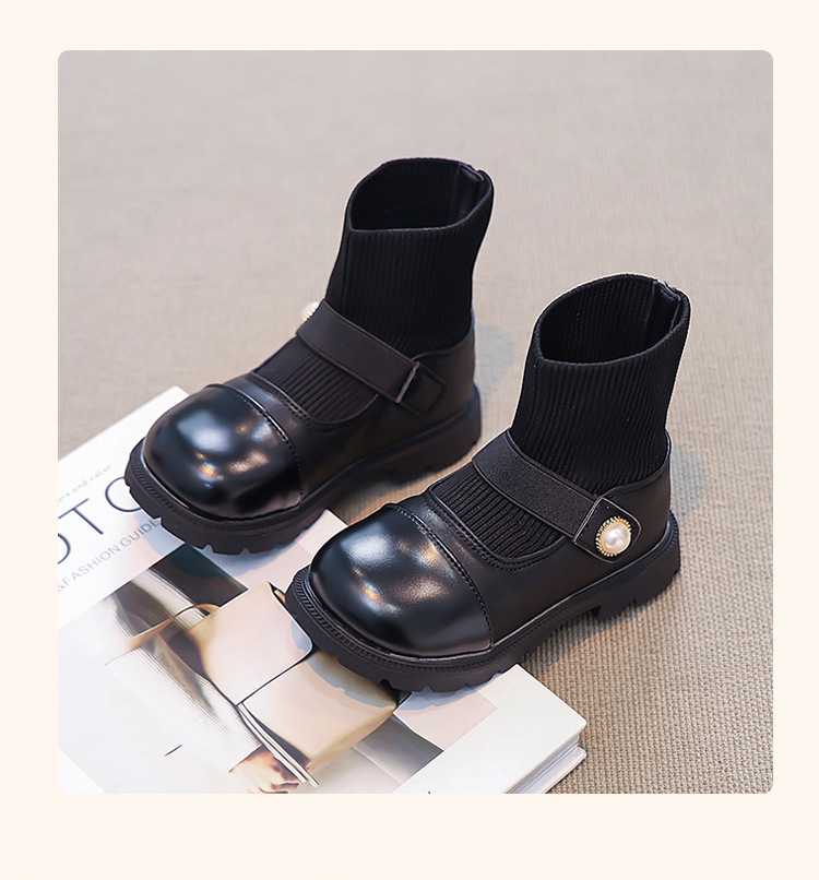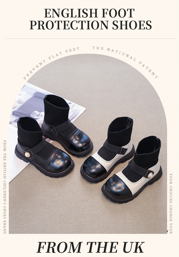 소녀 신발 어린이 마틴 작은 짧은 부츠 양말 부츠 2024 새로운 봄과 가을 작은 가죽 신발 샤넬 스타일 공주 신발