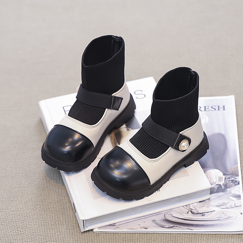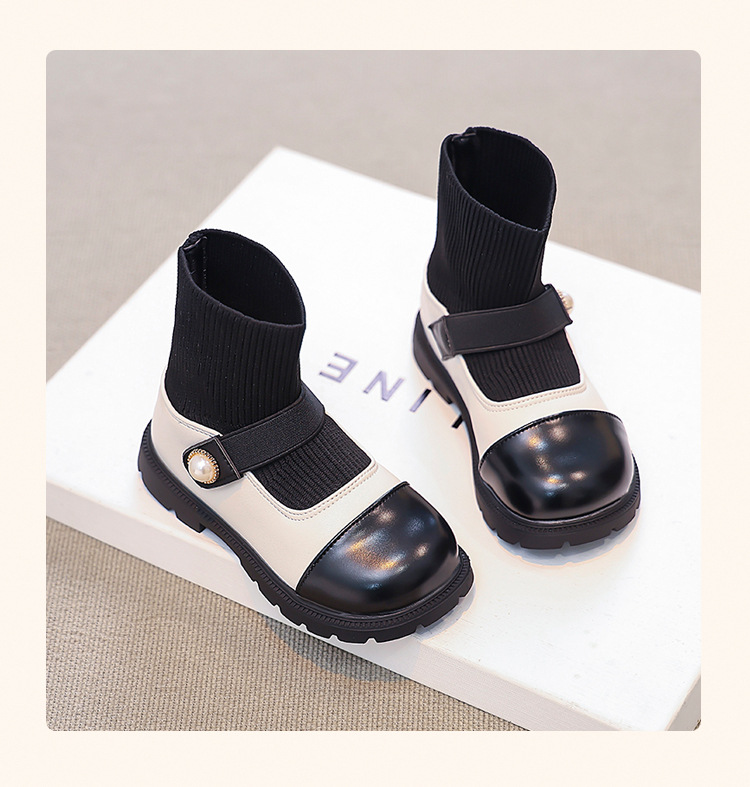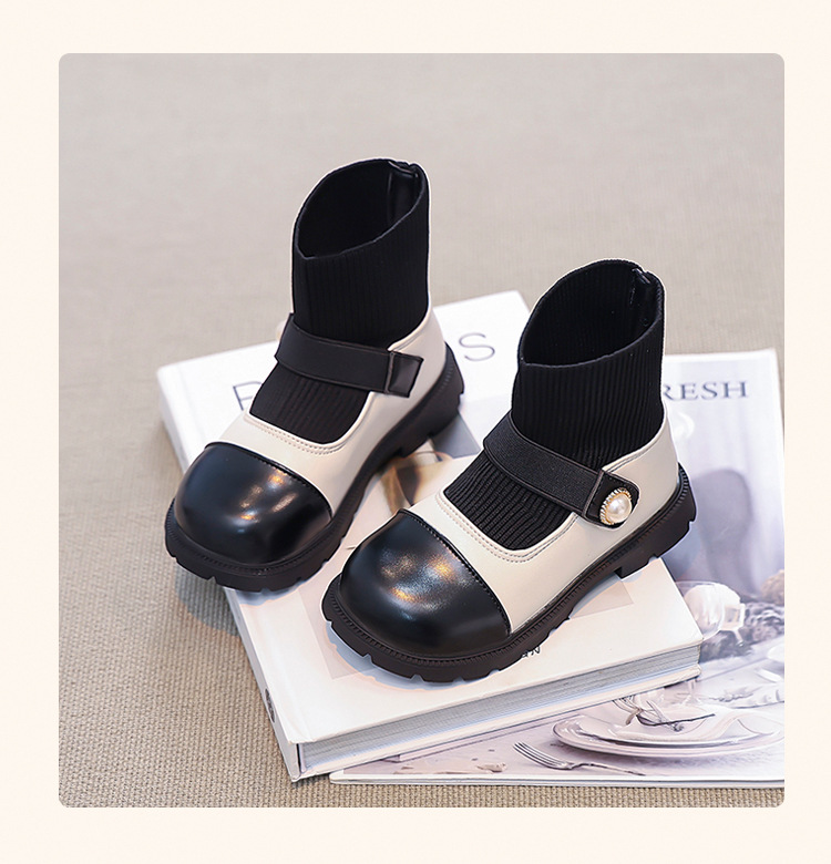 소녀 신발 어린이 마틴 작은 짧은 부츠 양말 부츠 2024 새로운 봄과 가을 작은 가죽 신발 샤넬 스타일 공주 신발스토어 가기