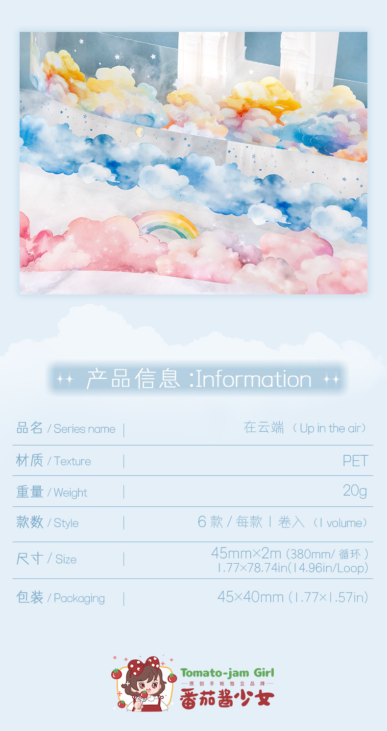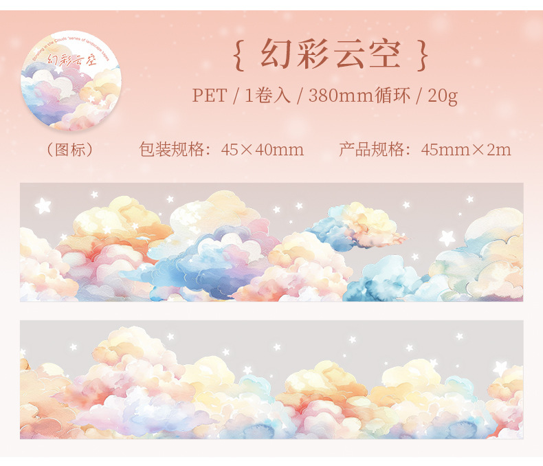 클라우드 시리즈 꿈의 구름 테마 장식 손 계정 장면 콜라주 자료에 케첩 PET 조경 테이프