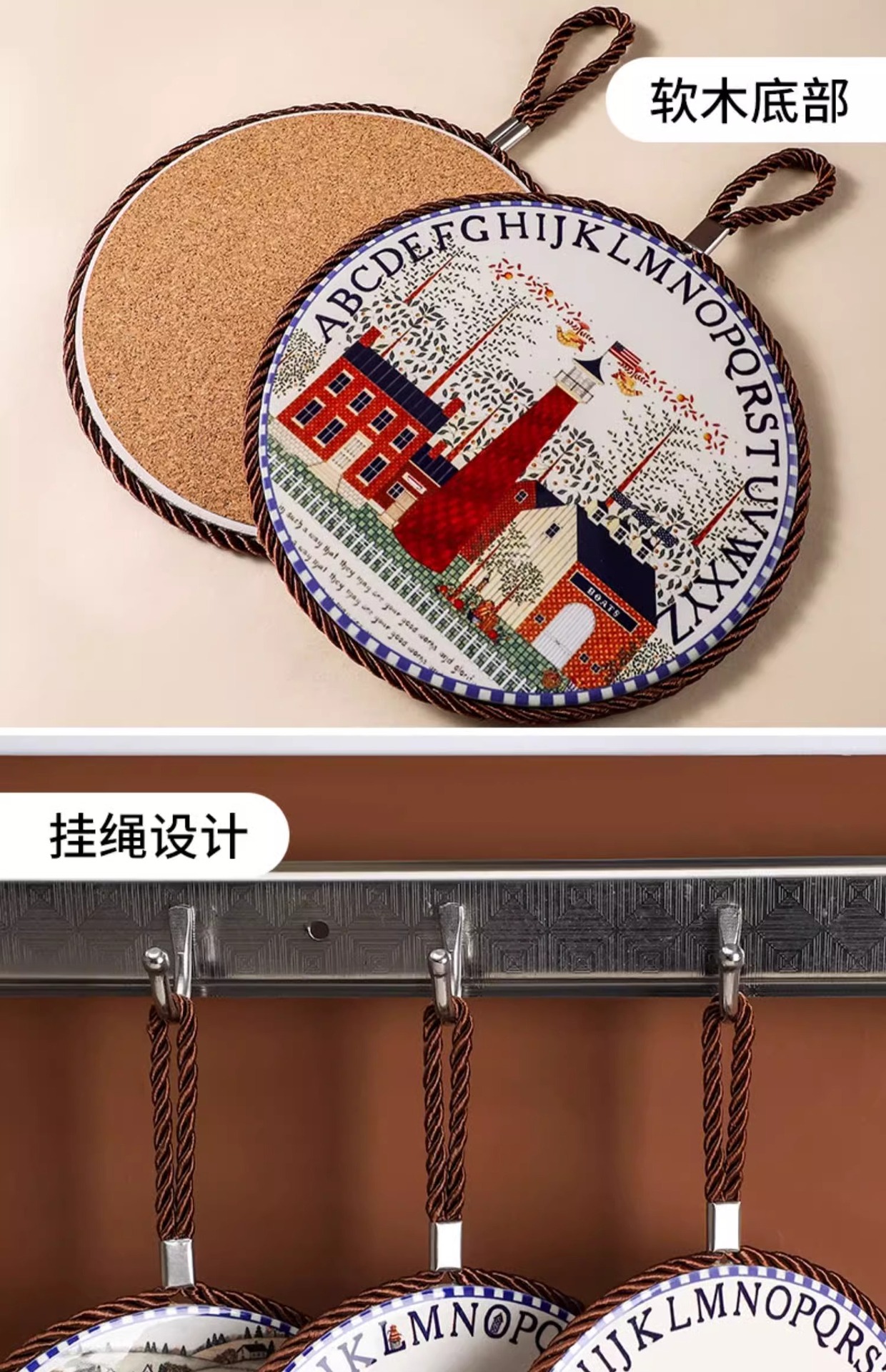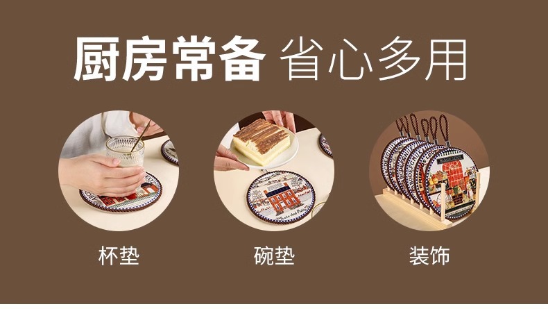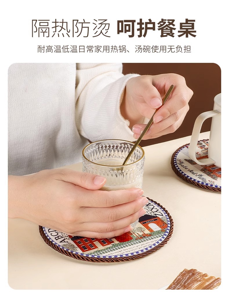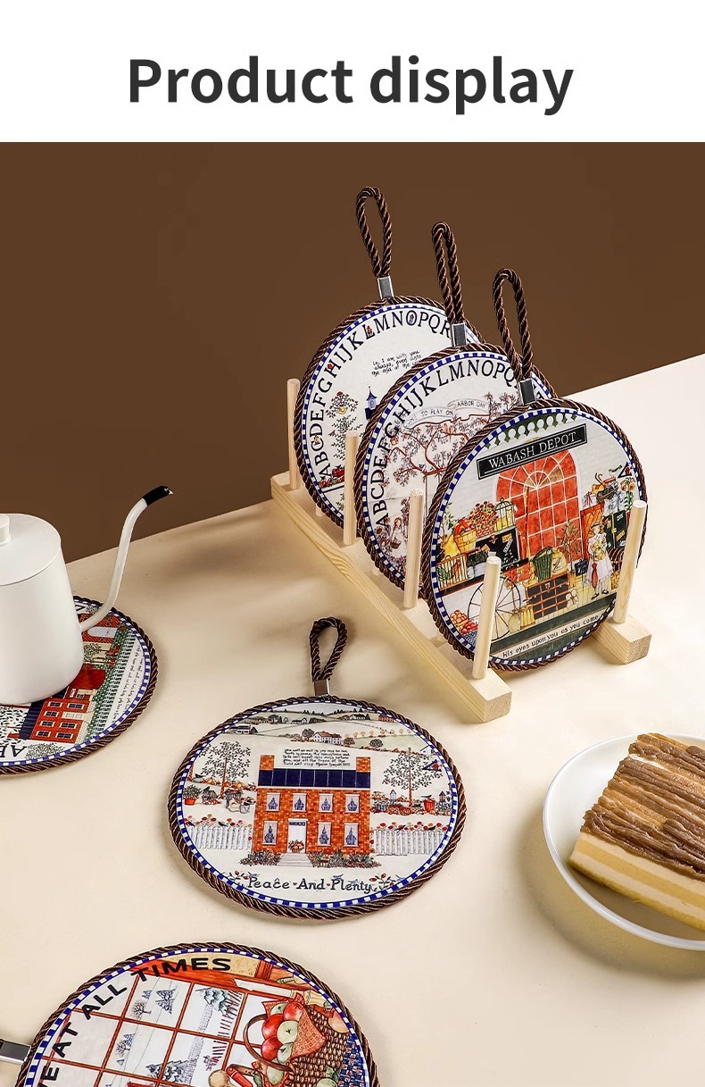 세라믹 열 절연 패드 가정용 고온 안티 스케일 코르크 매트 안티 슬립 매트 레트로 유럽 스타일 코스터 플레이스 매트 테이블 매트