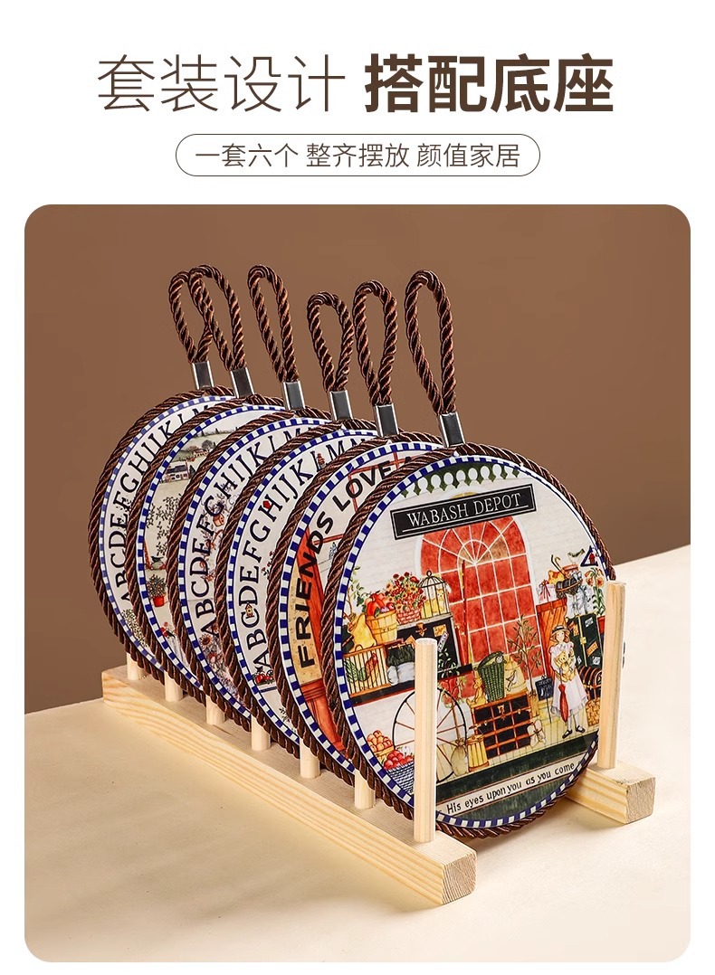 세라믹 열 절연 패드 가정용 고온 안티 스케일 코르크 매트 안티 슬립 매트 레트로 유럽 스타일 코스터 플레이스 매트 테이블 매트스토어 가기