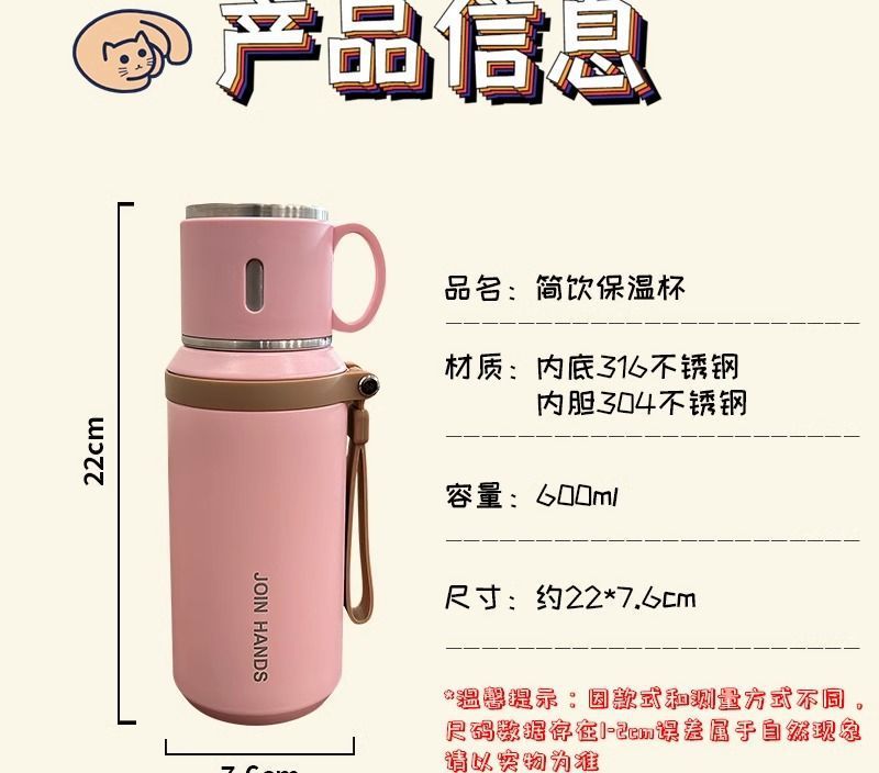 316 스테인레스 스틸 보온병 컵 여성 식품 학년 물 컵 학생 높은 색상 가치 컵 컵 컵 차