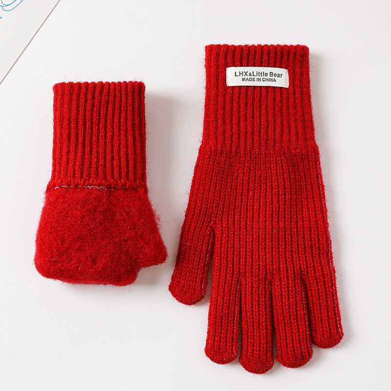 열린 손가락 터치 스크린 토끼 모피 기모 따뜻한 장갑 겨울 따뜻한 부동액 다섯 손가락 라이딩 휴대 전화 장갑 조수스토어 가기