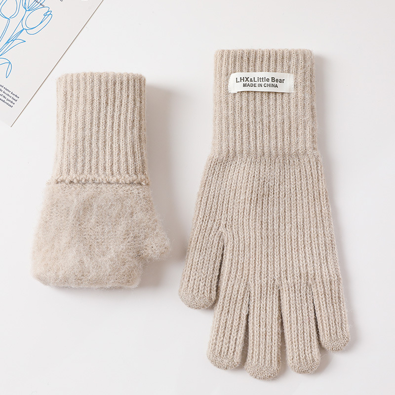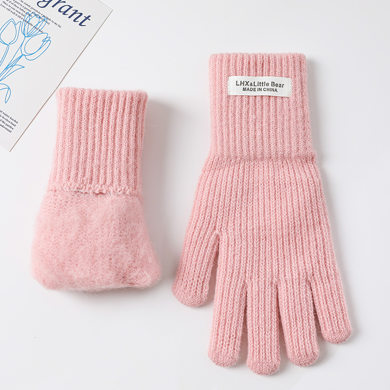 열린 손가락 터치 스크린 토끼 모피 기모 따뜻한 장갑 겨울 따뜻한 부동액 다섯 손가락 라이딩 휴대 전화 장갑 조수