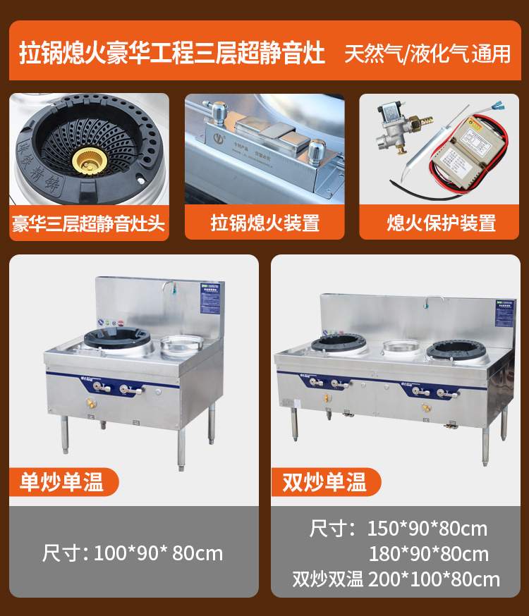 • 이중층 저소음 모델 90cm 단일 튀김 단일 온도 [팬 포함] 천연 가스/액화 가스 범용