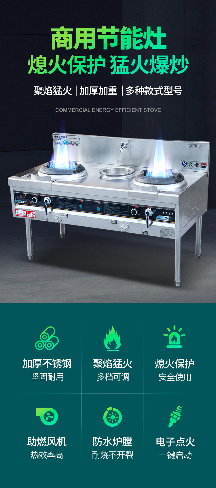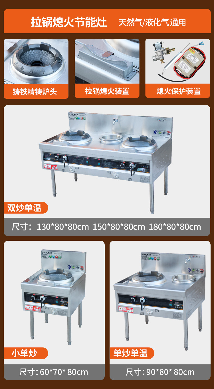 • [화염 차단 보호 모델] 60*70*80 단일 프라이팬 포함 천연 가스/액화 가스 범용