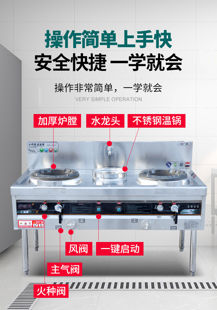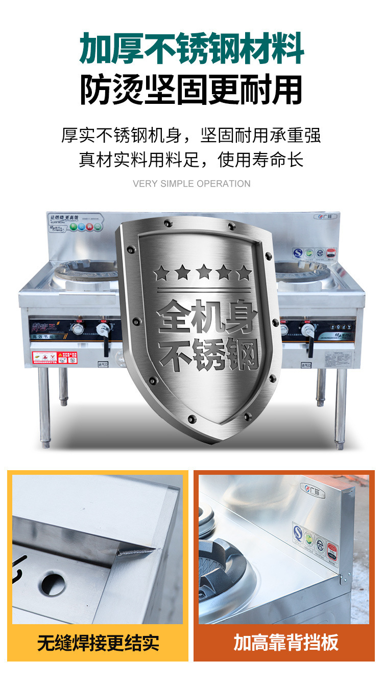 상업용 치열한 스토브 가스 에너지 절약 단일 및 이중 스토브 스테인레스 스틸 가스 스토브 주방 천연 액화 가스 스토브 호텔 스토브스토어 가기