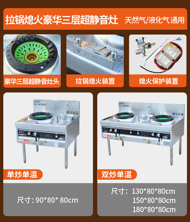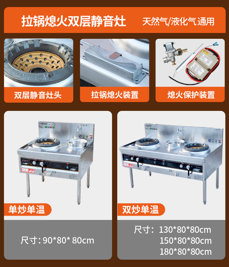 • 3겹의 초저소음 [화염 차단 보호 + 냄비 당김 화염 차단] 1.3m 이중 튀김 단일 온도대 팬