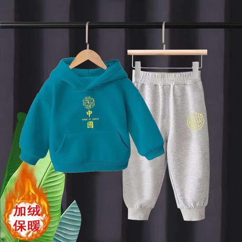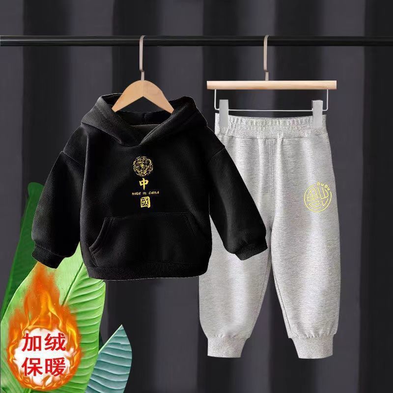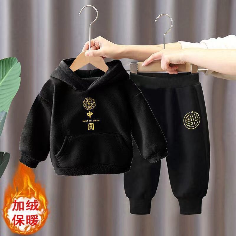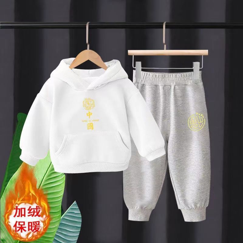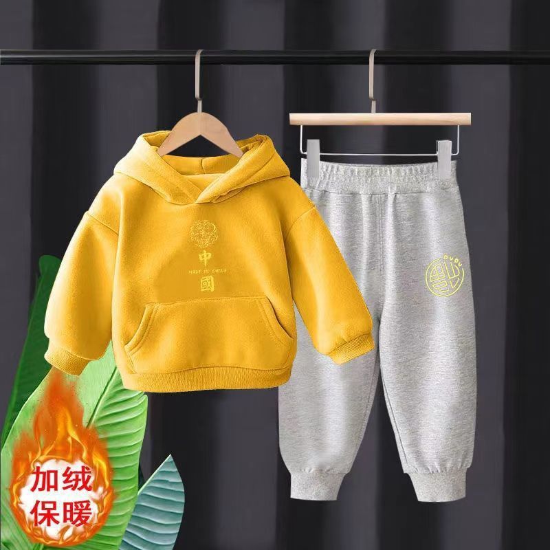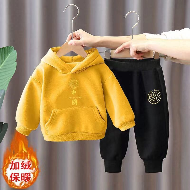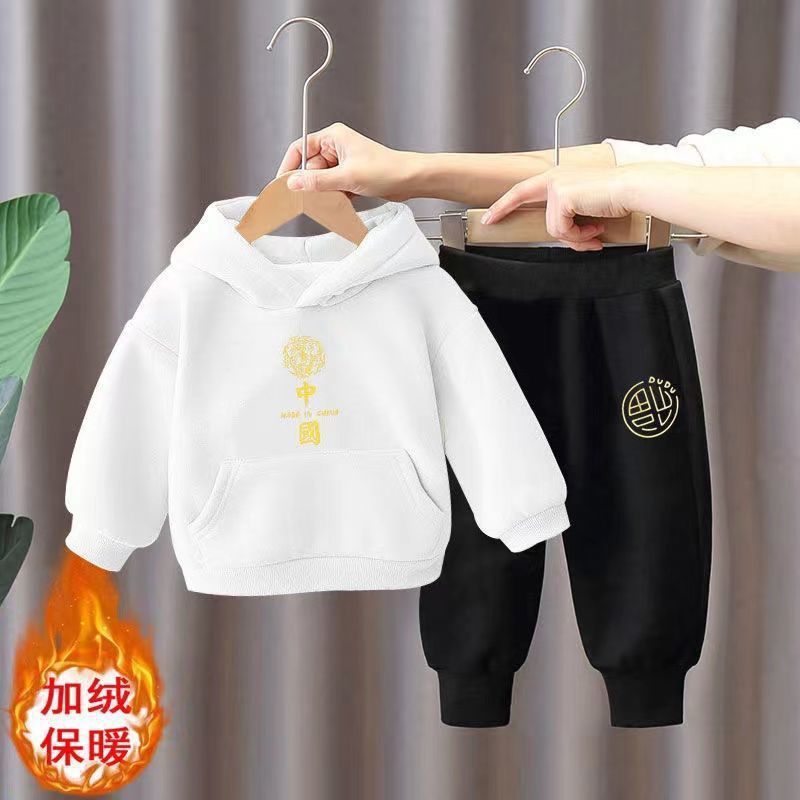 어린이 세트 소년 기모 땀 겨울 새 기모 두꺼운 아기 소녀의 따뜻한 탑 서양식 투피스 세트스토어 가기