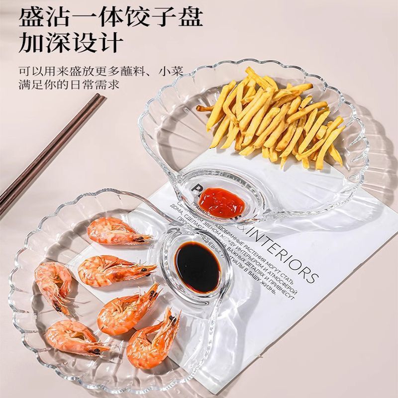 새로운 조개 모양 만두 접시, 식초 접시 포함, 가정용 만두 접시, 고급스러운 디자인의 칸막이 조개 모양 접시, 창의적인 과일 접시