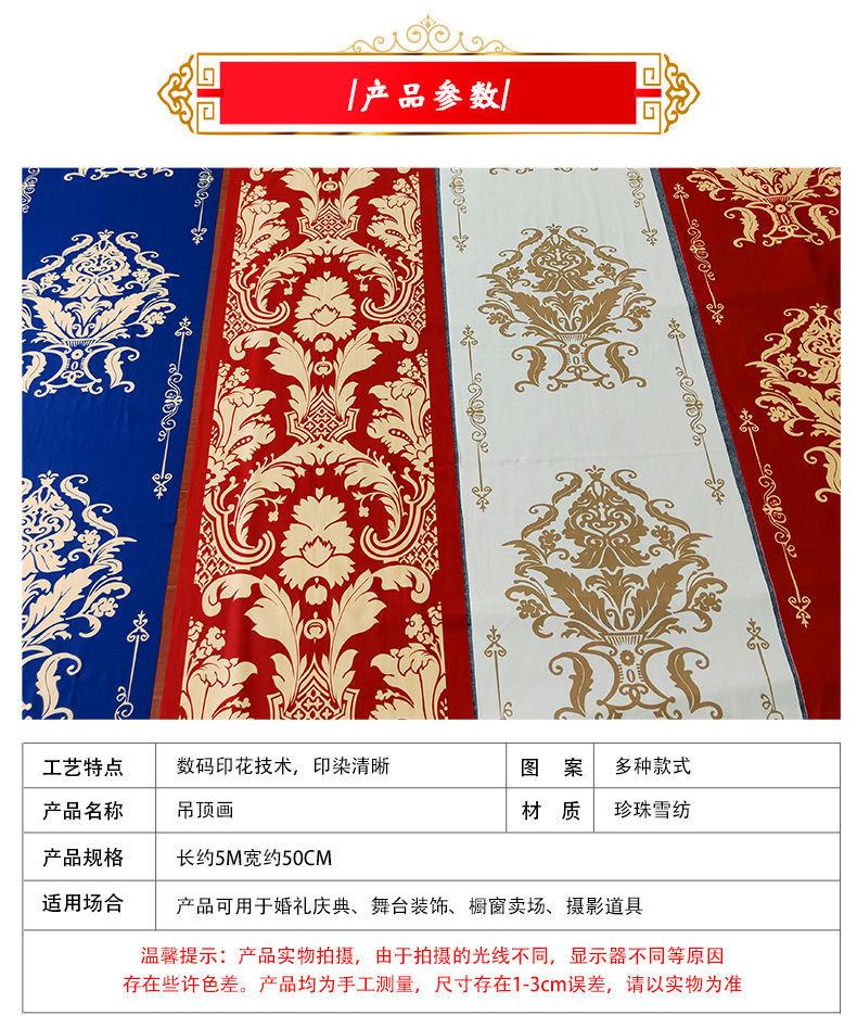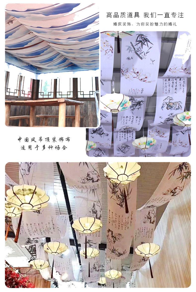 中式婚礼新款水墨画吊顶布幔婚礼堂飘顶纱布幔婚礼舞台吊顶装饰布