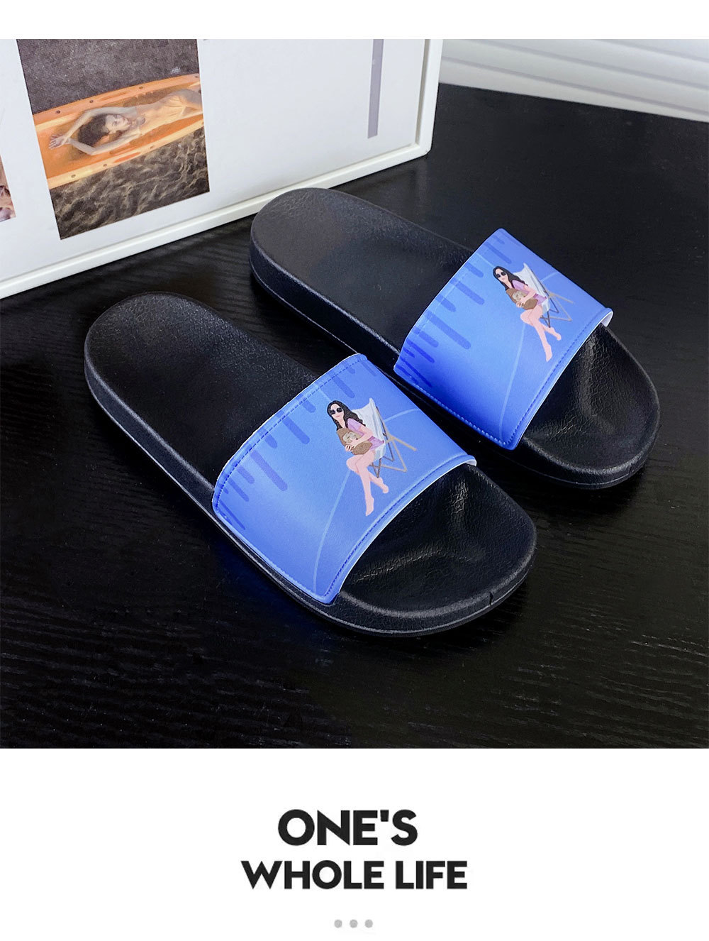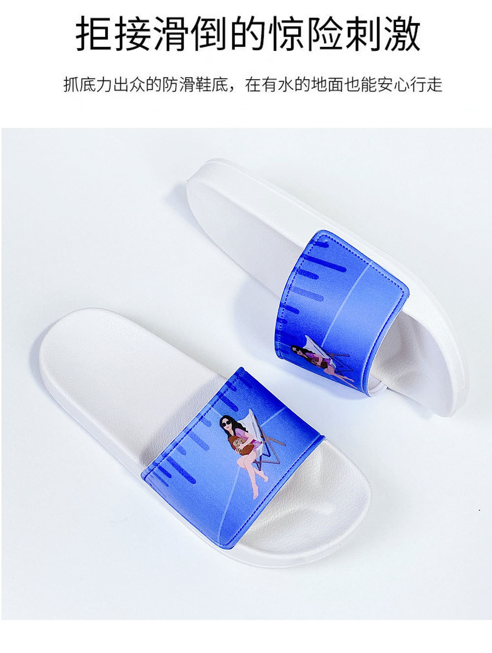 2024 새로운 대외 무역 여름 슬리퍼 여성 의상 홈 실내 목욕 커플 귀여운 인터넷 축하 샌들스토어 가기