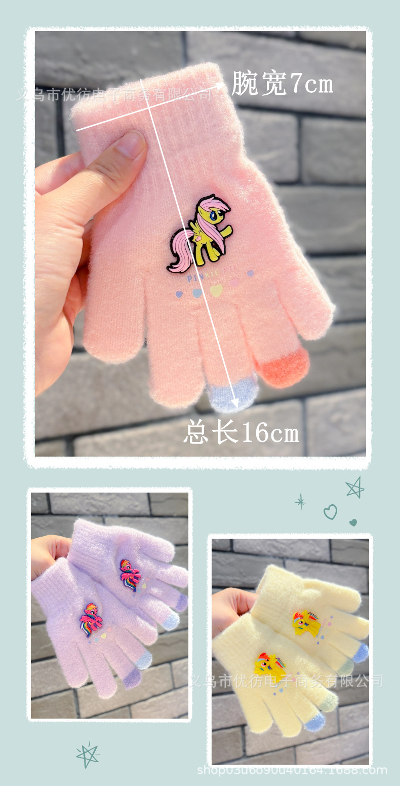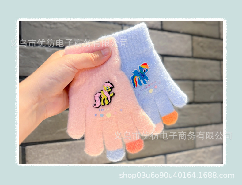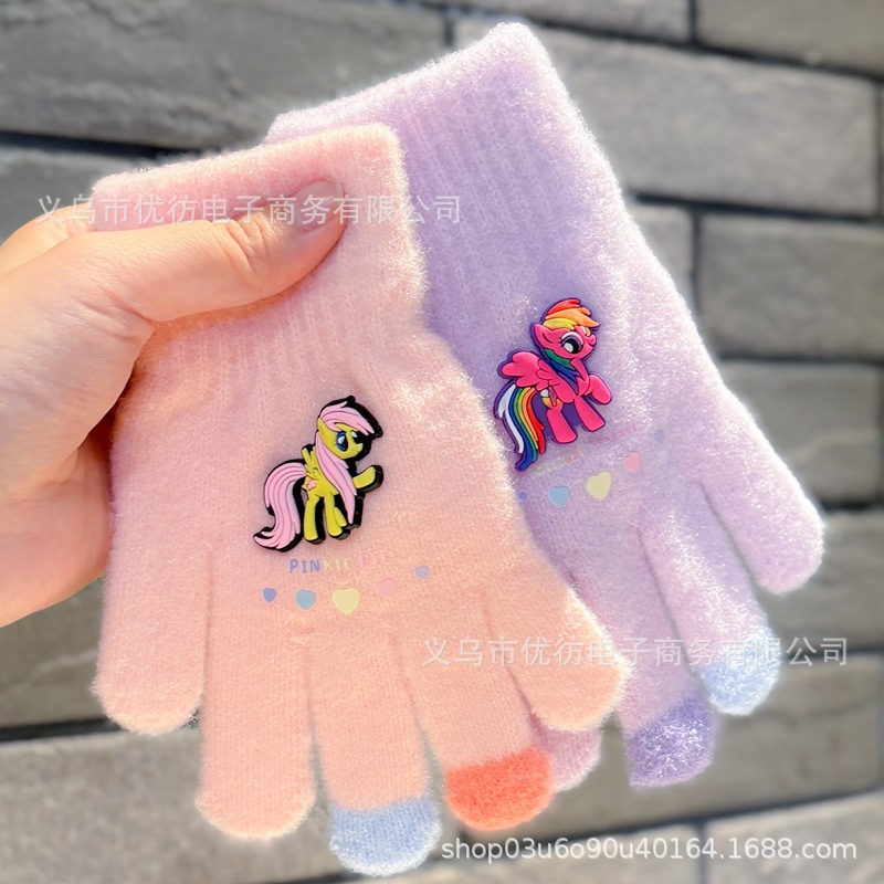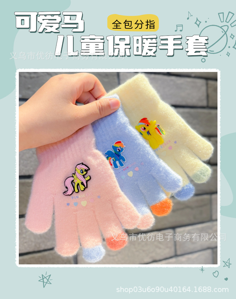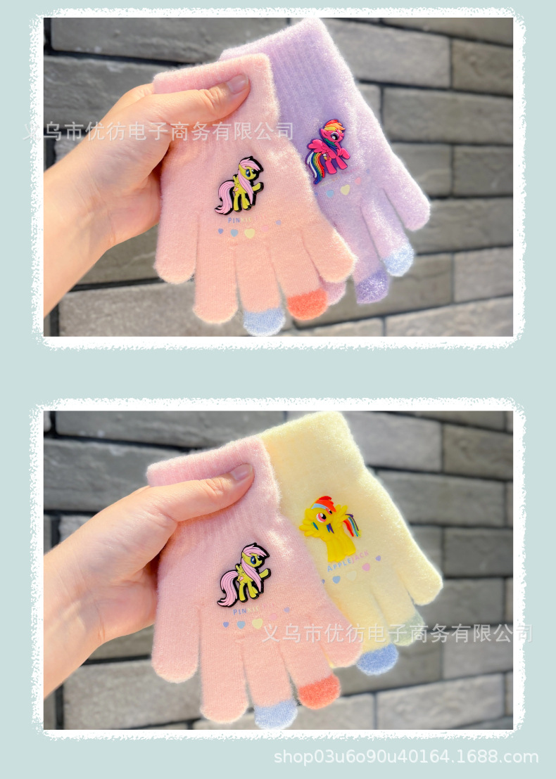 소녀 아기 소녀를위한 장갑 가을과 겨울 만화 조랑말 방풍 방수 따뜻한 부드러운 풀 가방 귀여운 다섯 손가락