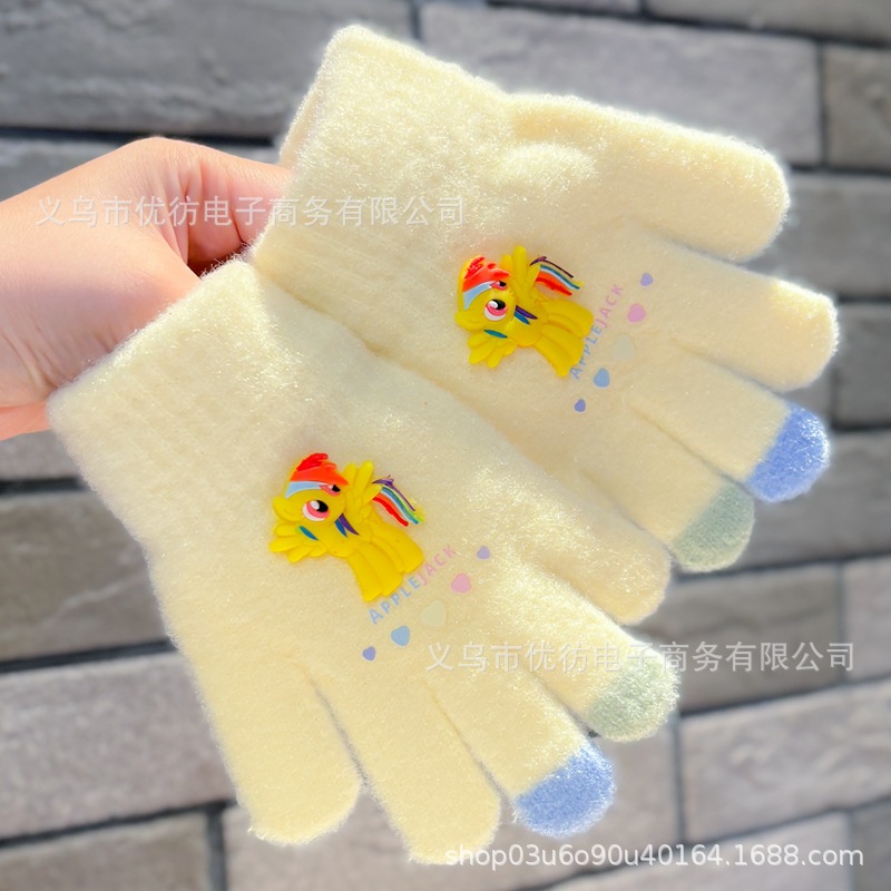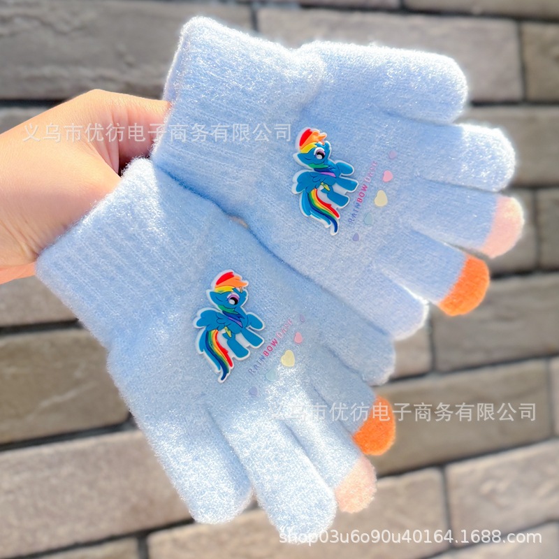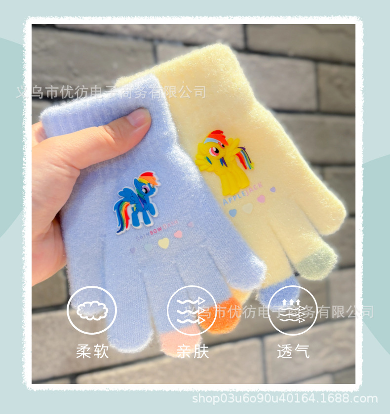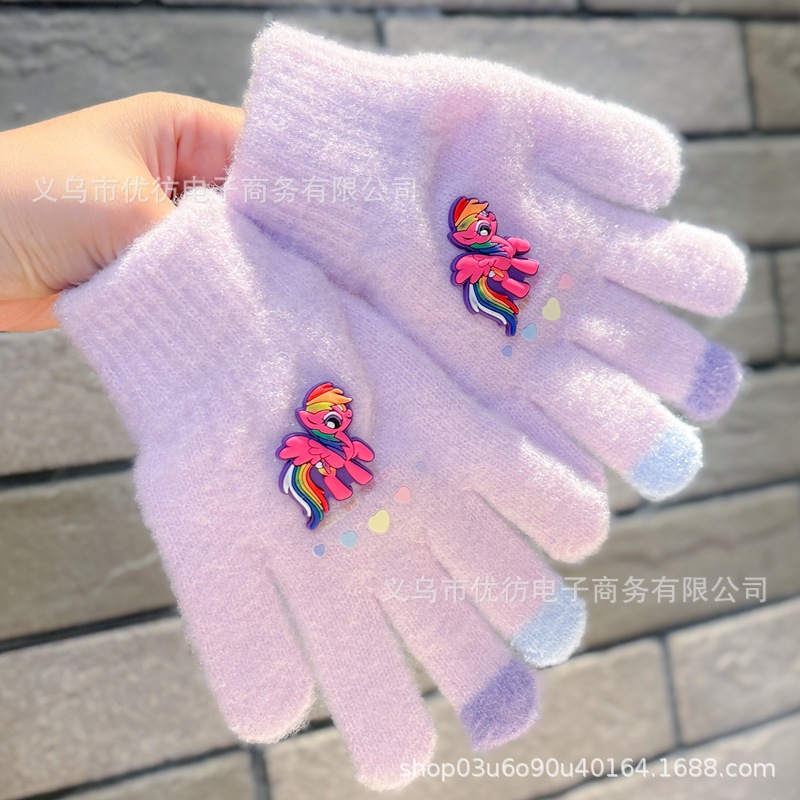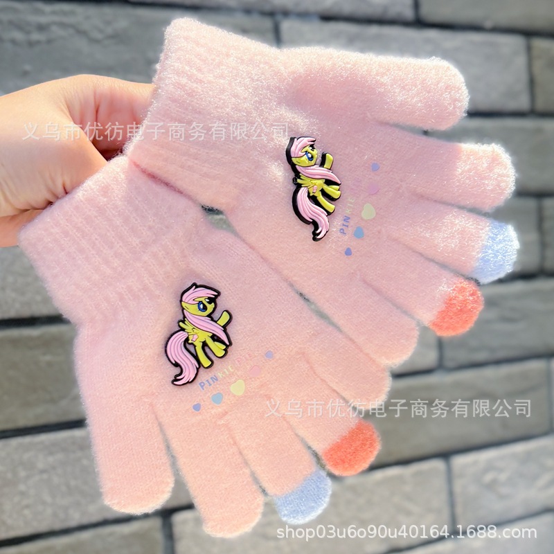 소녀 아기 소녀를위한 장갑 가을과 겨울 만화 조랑말 방풍 방수 따뜻한 부드러운 풀 가방 귀여운 다섯 손가락