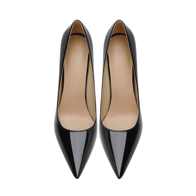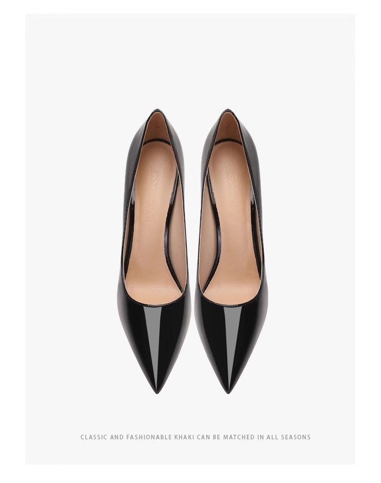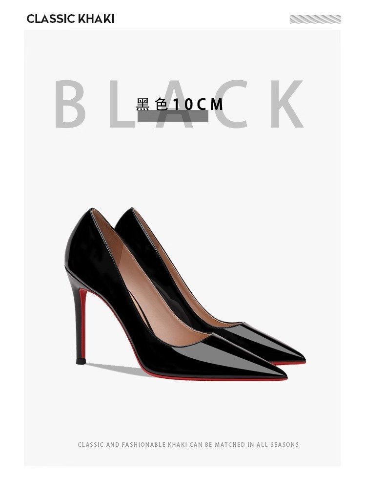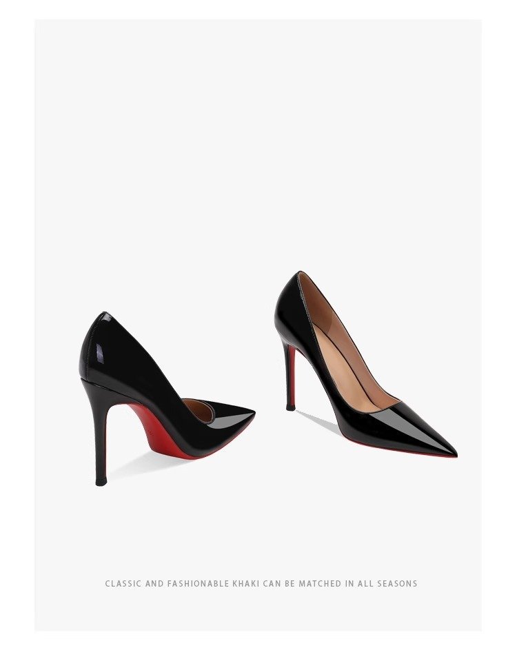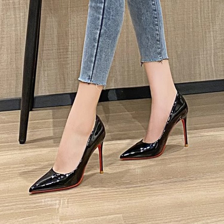 블랙 하이힐 여성 스틸레토 힐 2024 봄과 가을 새로운 빨간 신발 뾰족한 섹시한 기질 특허 가죽 전문 신발스토어 가기