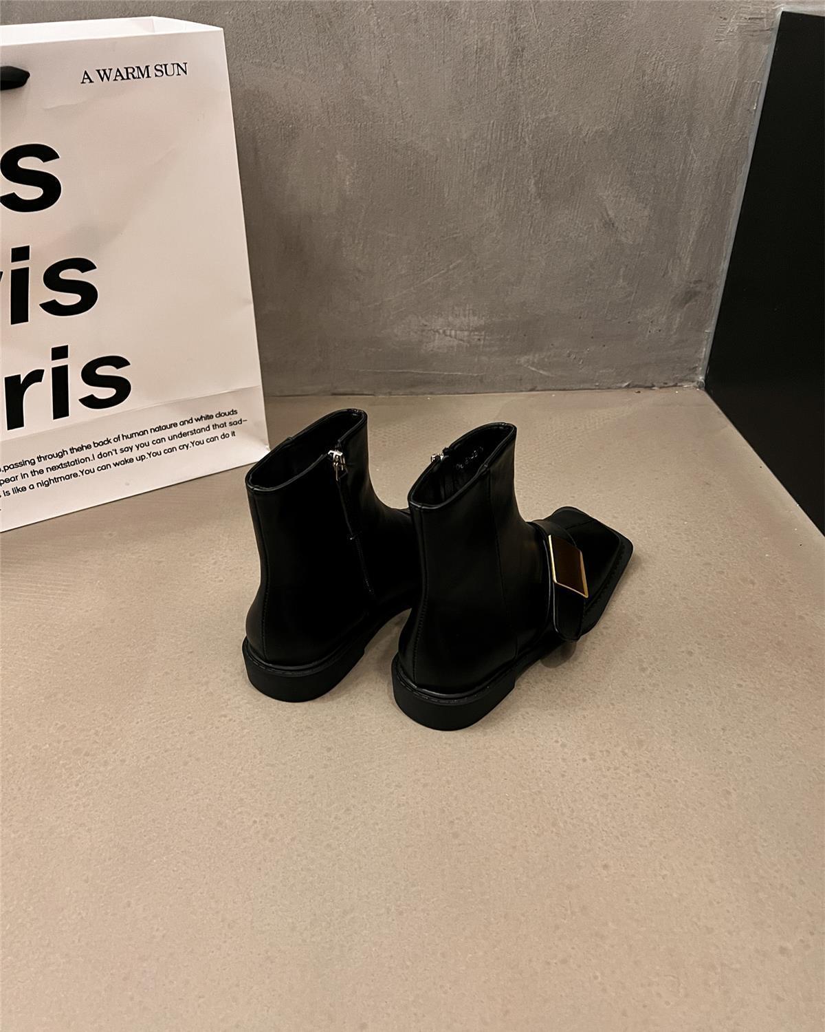 프라이드 스트리트 부츠 여성 2024 새로운 디자인 센스 니쉬 플랫 한국식 작은 알몸 부츠 마틴 첼시 부츠