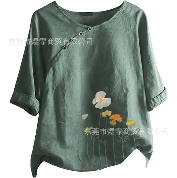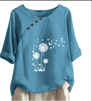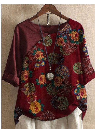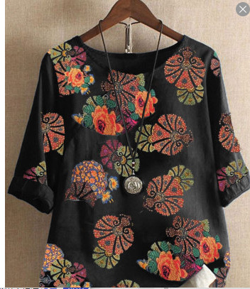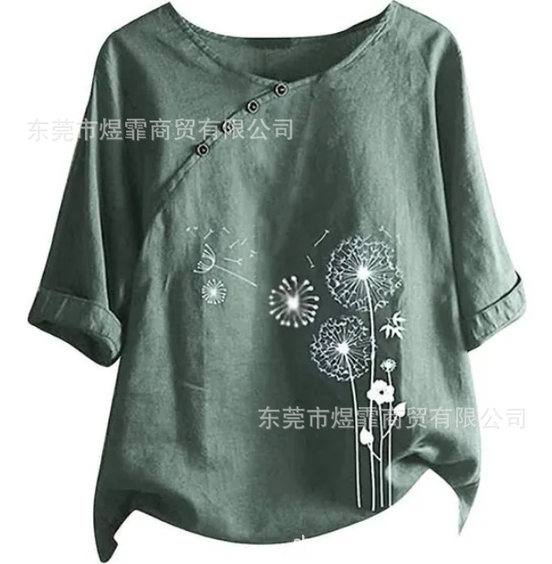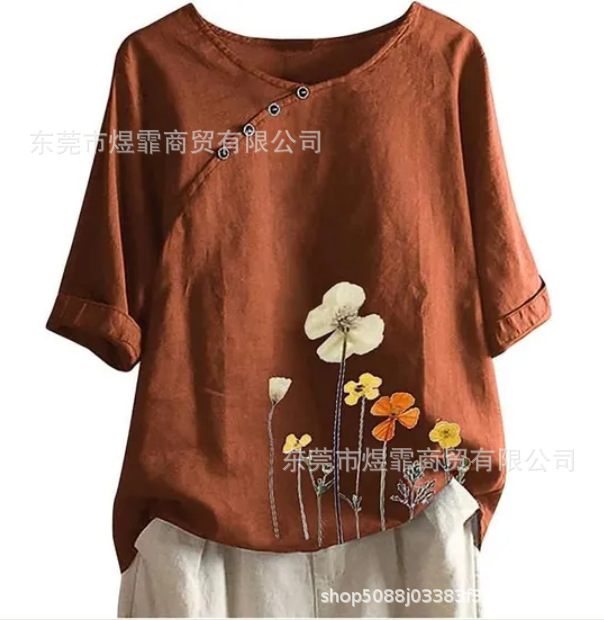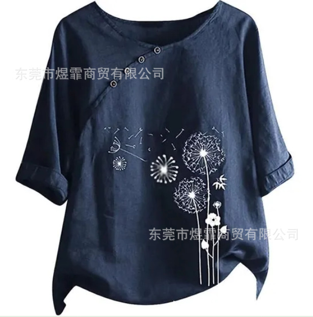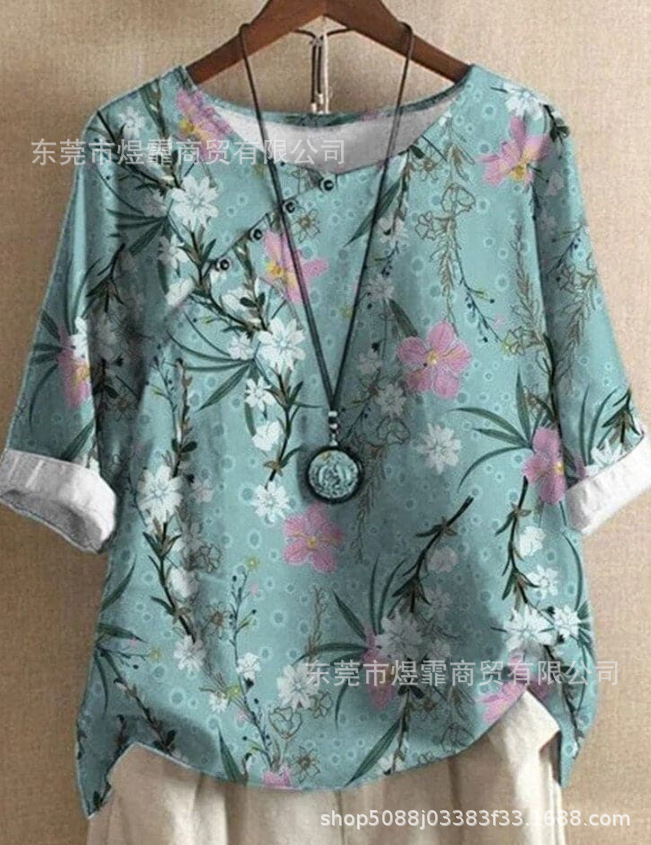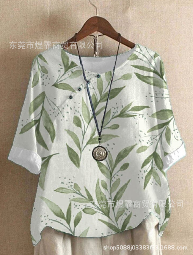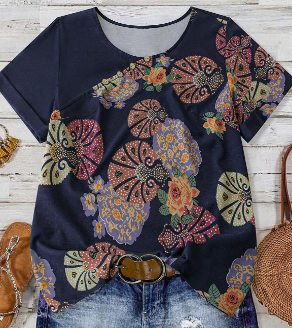 아마존 국경 간 여성 반팔 티셔츠 버튼 3D 디지털 인쇄 플러스 사이즈 유럽과 미국스토어 가기