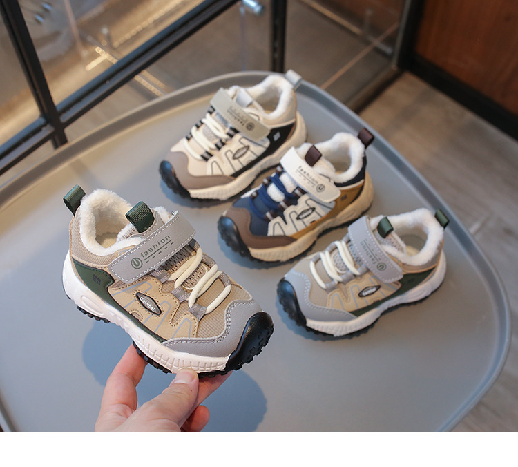 2025년 신형 아동용 면화 신발 남아용 스포츠 면화 신발 미끄럼 방지 부드러운 밑창 여아용 플러스 벨벳 신발 대량 판매