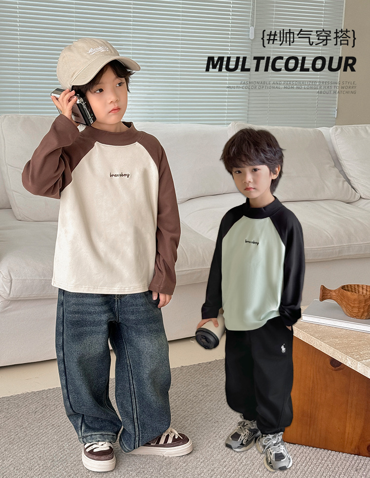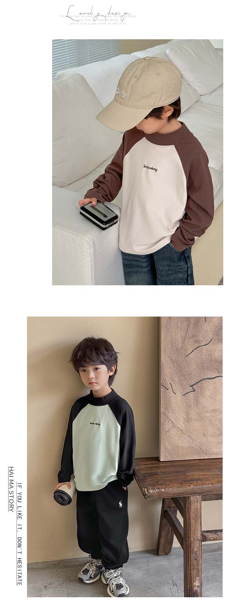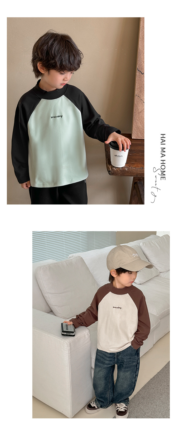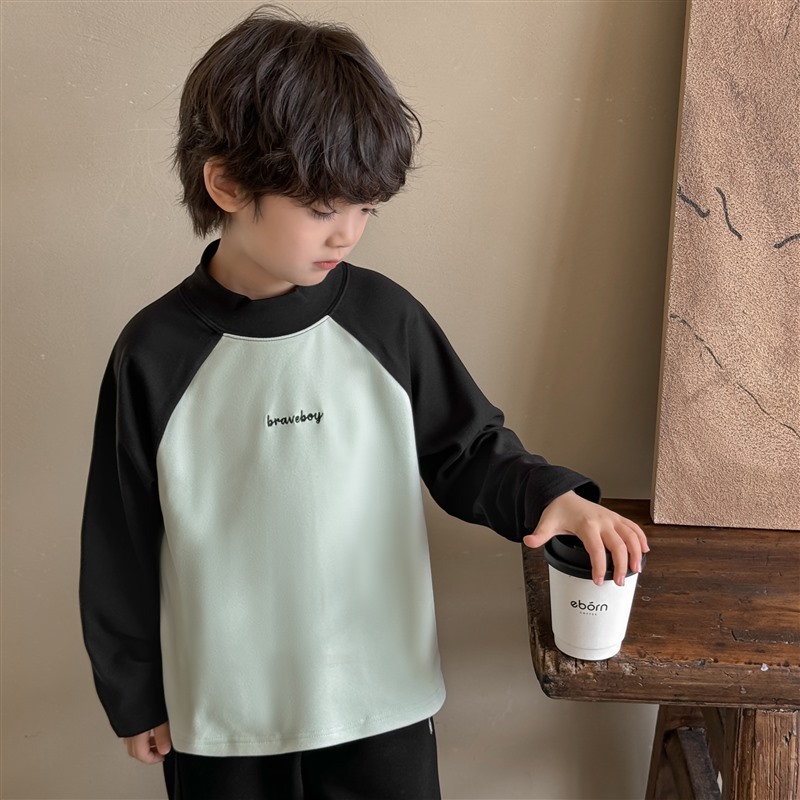 해마가족 남아용 긴팔 티셔츠 2025 겨울 신상 아동 래글런 슬리브 남아용 드롱 이너웨어 상의 트렌디스토어 가기