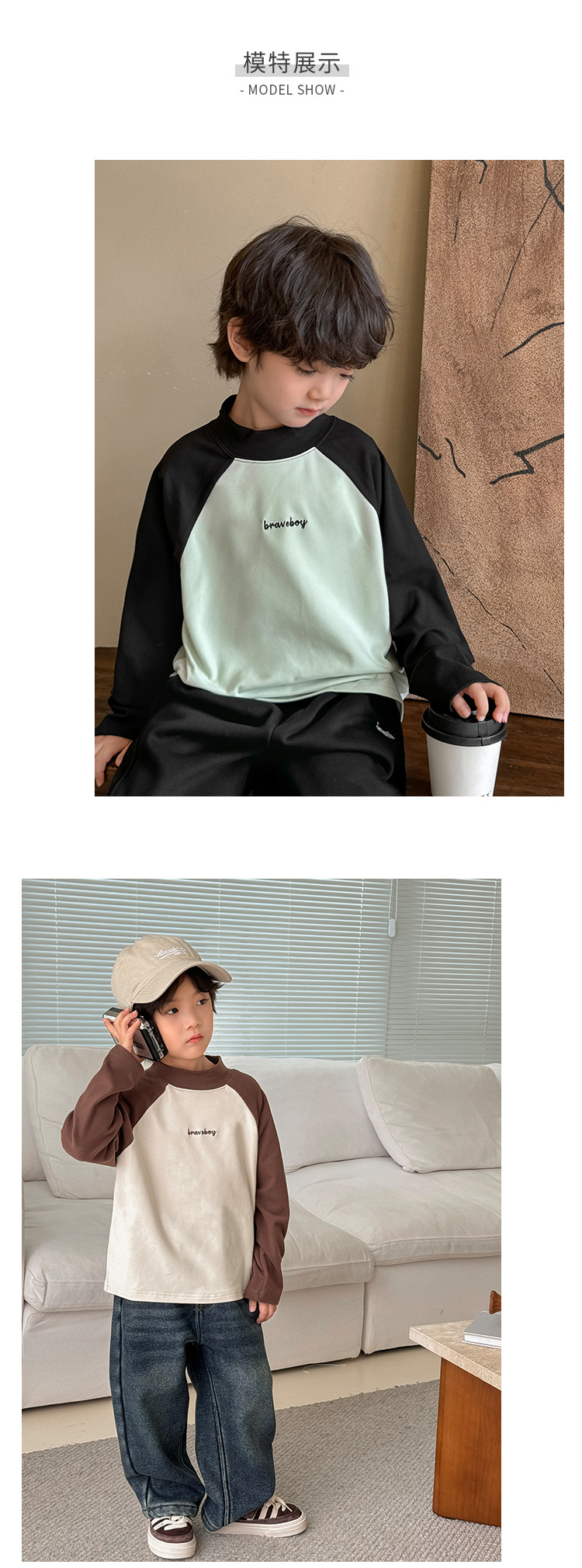 해마가족 남아용 긴팔 티셔츠 2025 겨울 신상 아동 래글런 슬리브 남아용 드롱 이너웨어 상의 트렌디