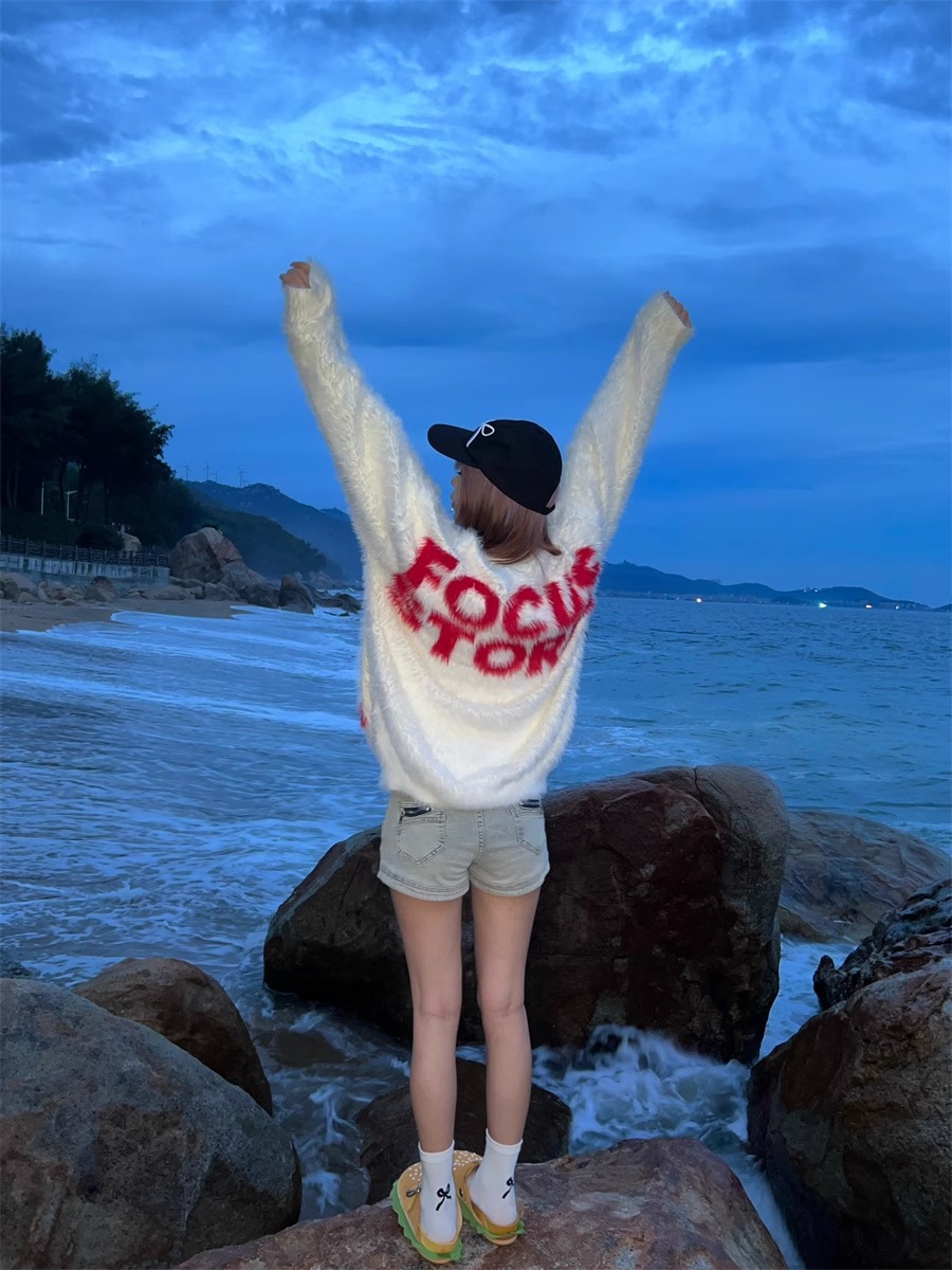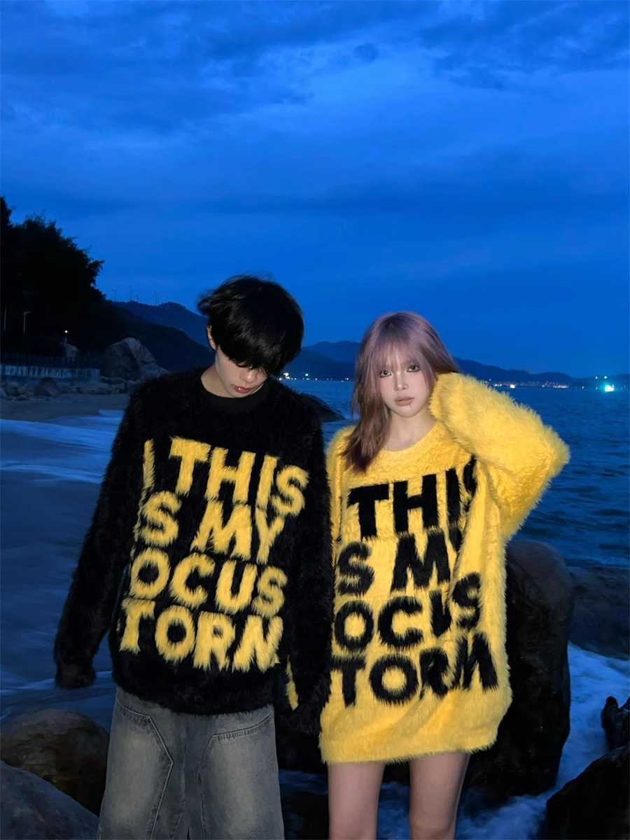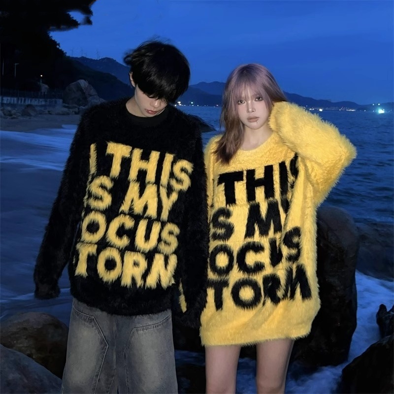 미국 스타일의 트렌디 한 편지 모조 밍크 헤어 게으른 스타일 커플 모직 스웨터 남성과 여성의 느슨한 캐주얼 가을과 겨울 스웨터 재킷