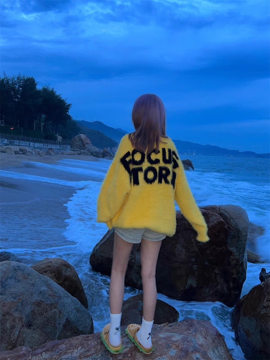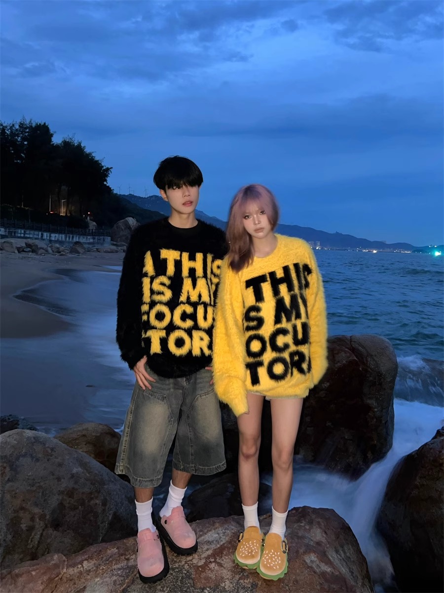 미국 스타일의 트렌디 한 편지 모조 밍크 헤어 게으른 스타일 커플 모직 스웨터 남성과 여성의 느슨한 캐주얼 가을과 겨울 스웨터 재킷스토어 가기