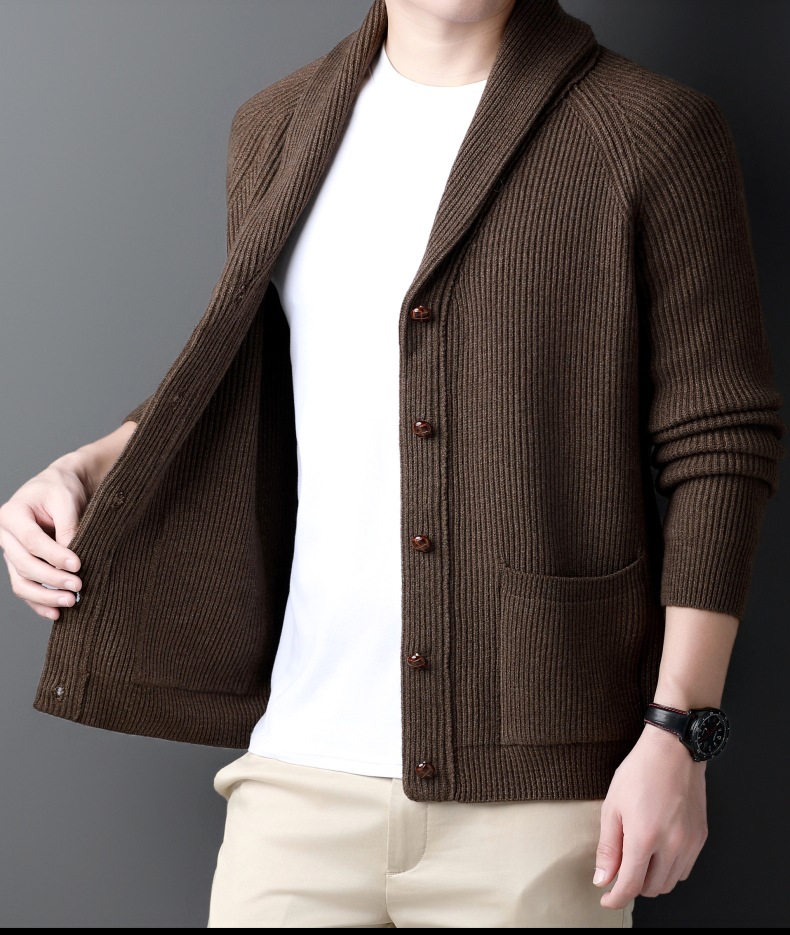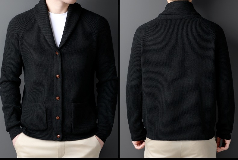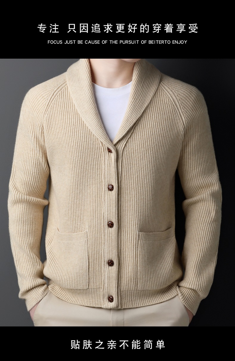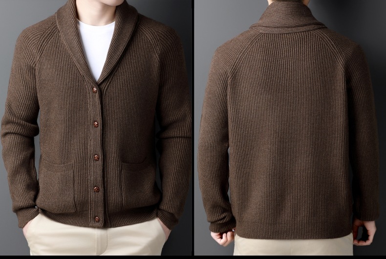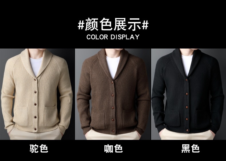 남자의 두꺼운 600g 가을과 겨울 스카프 V-Neck 포켓 니트 스웨터 한국 스타일 캐주얼 패션 카디건 재킷