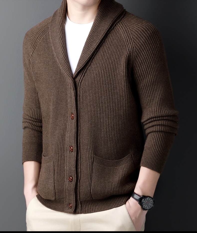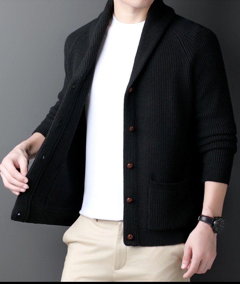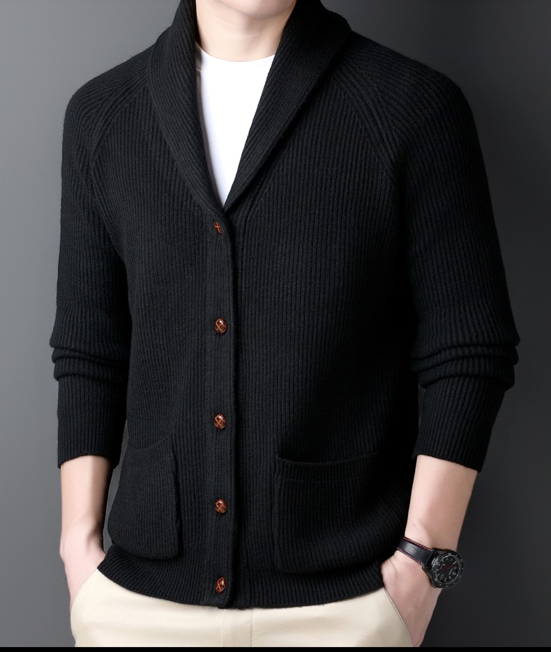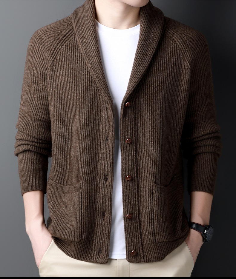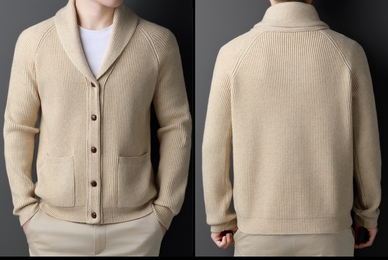 남자의 두꺼운 600g 가을과 겨울 스카프 V-Neck 포켓 니트 스웨터 한국 스타일 캐주얼 패션 카디건 재킷