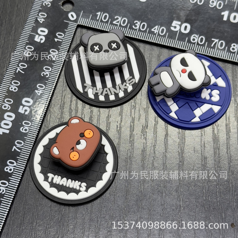 크로스보더 베어 어린이 만화 회전 풍차 놀이용 원형 플라스틱 스탬프, 부드러운 고무 스탬프, 구멍 신발 장식, 신발 버클