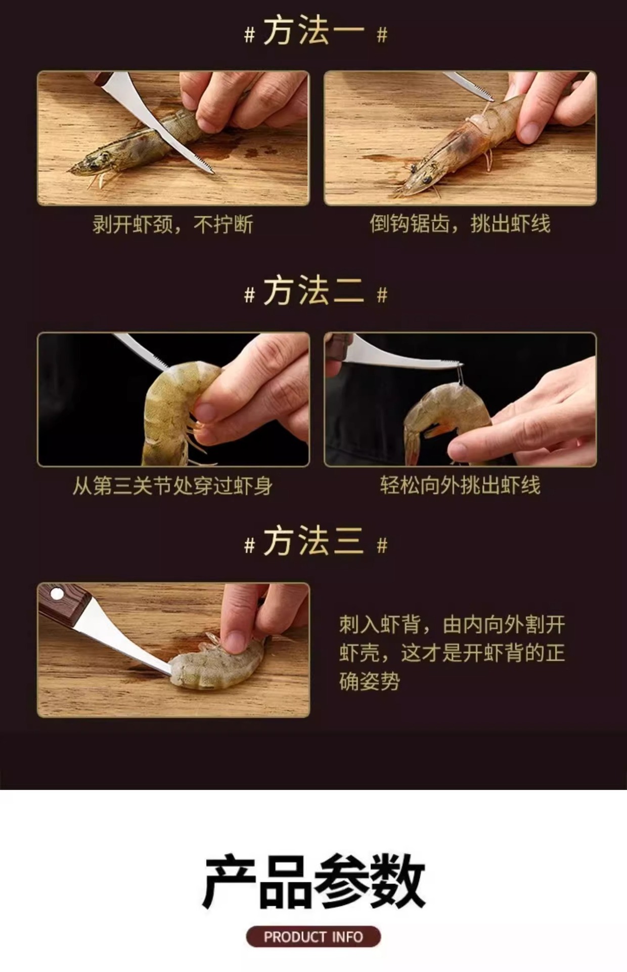 새우 라인 제거 칼 새우줄 제거 유물 솔리드 우드 스테인레스 스틸 주방 다기능 새우 쉘 피킹 생선 소시지 새우 백 칼스토어 가기