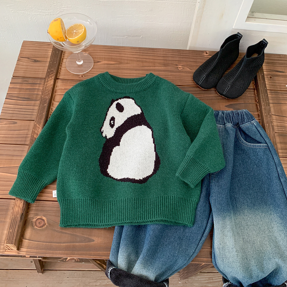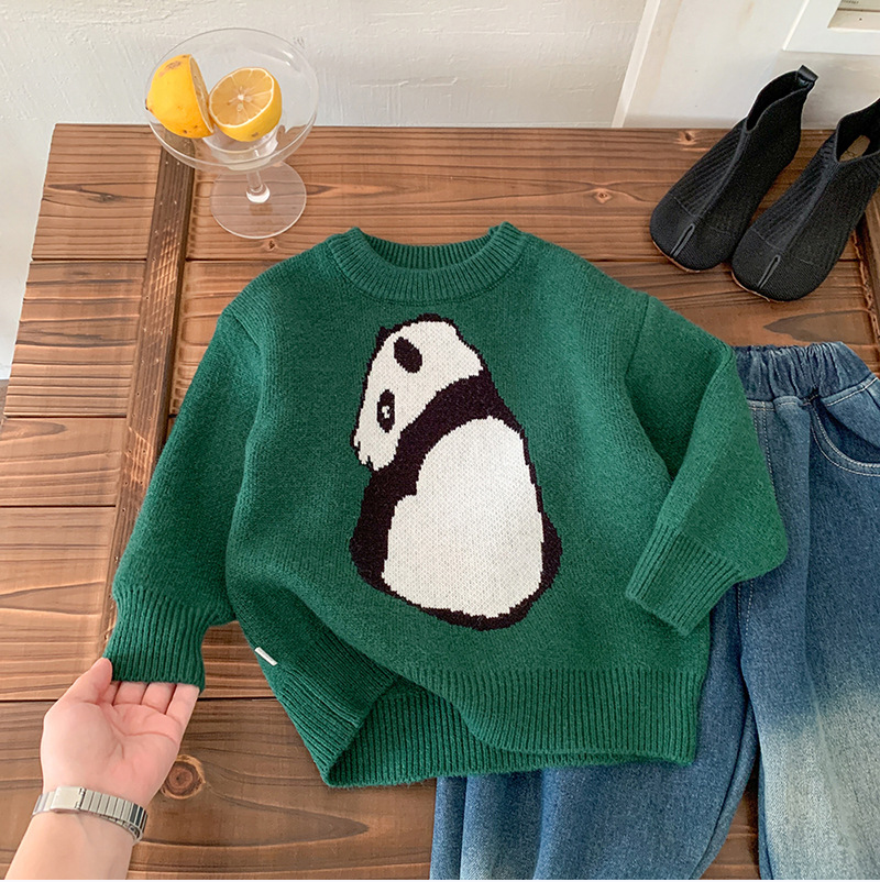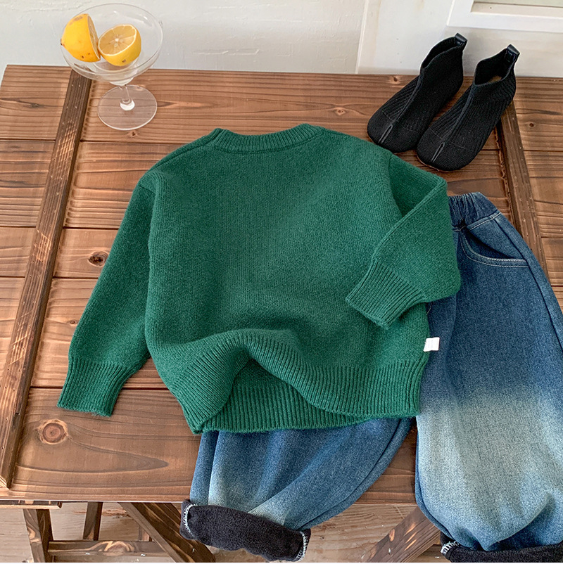 어린이 스웨터 2024 새로운 가을 겨울 착용 남자 아기 풀오버 한국 스타일 서양식 어린이 소년 니트 스웨터
