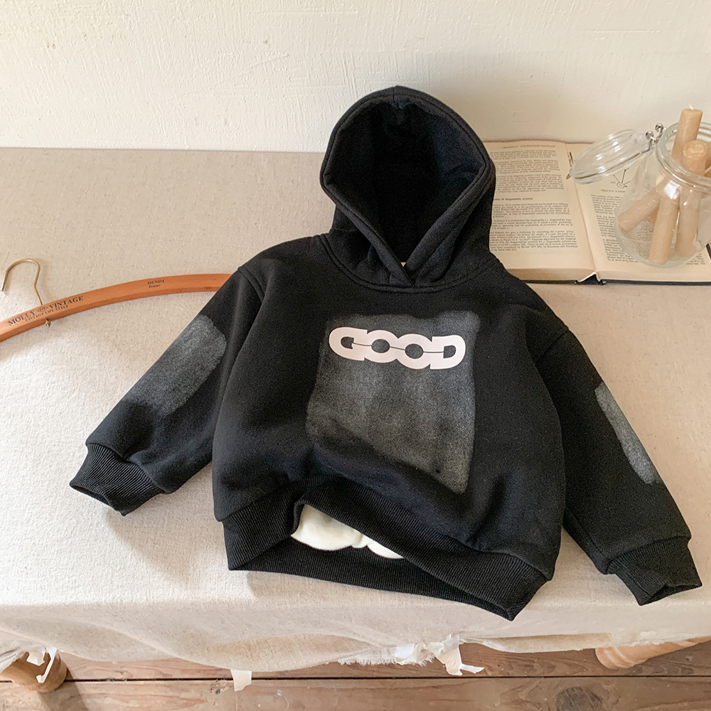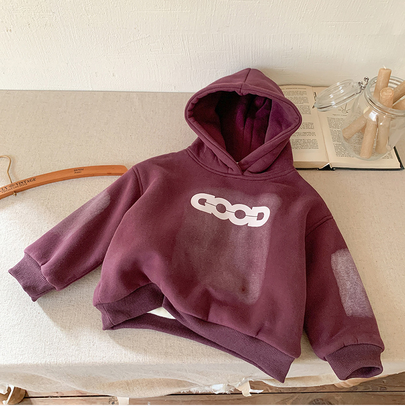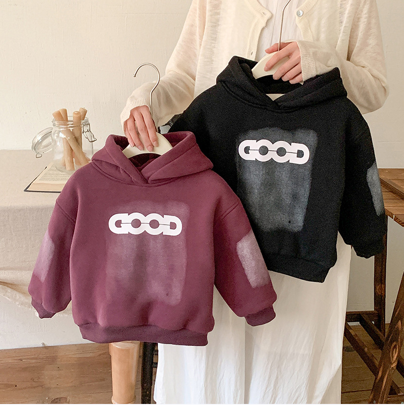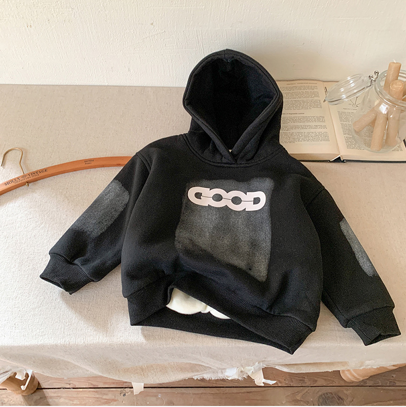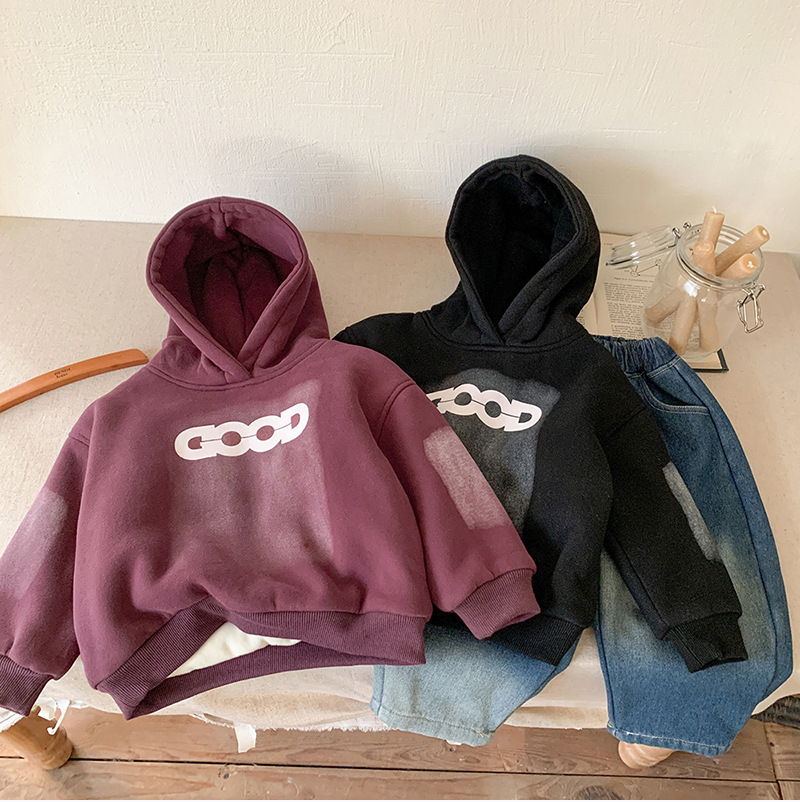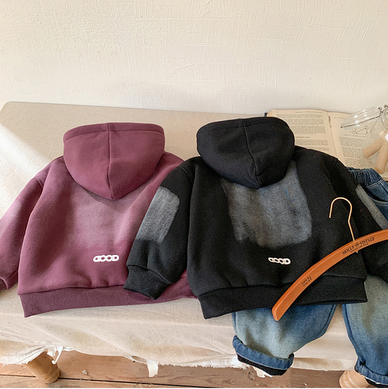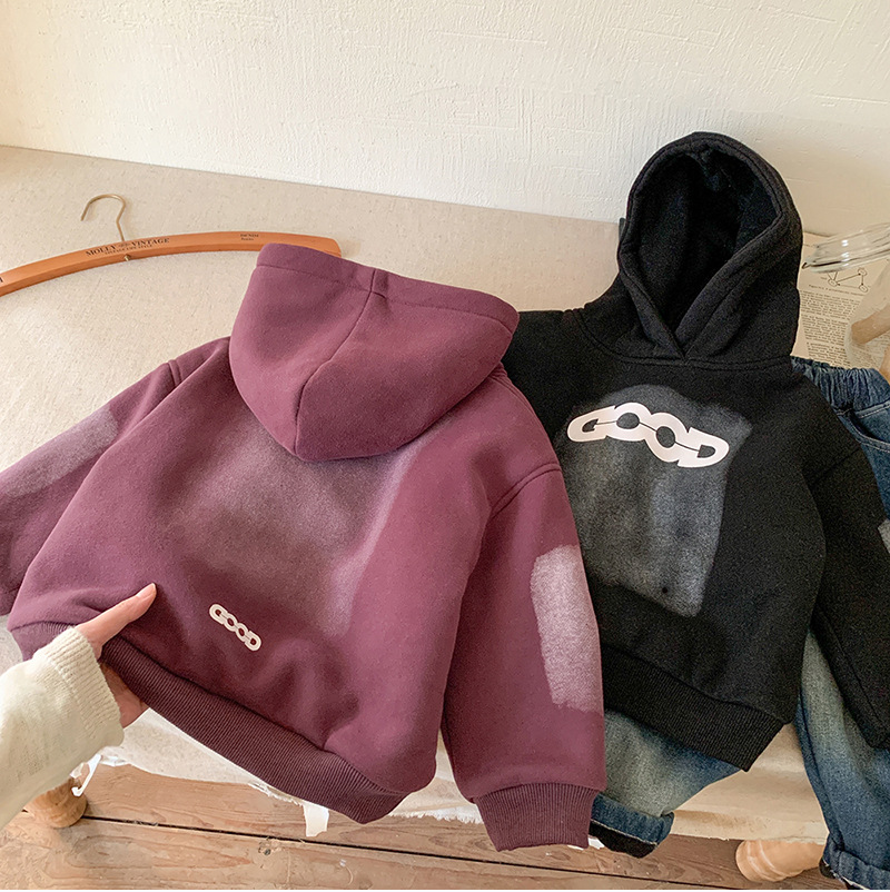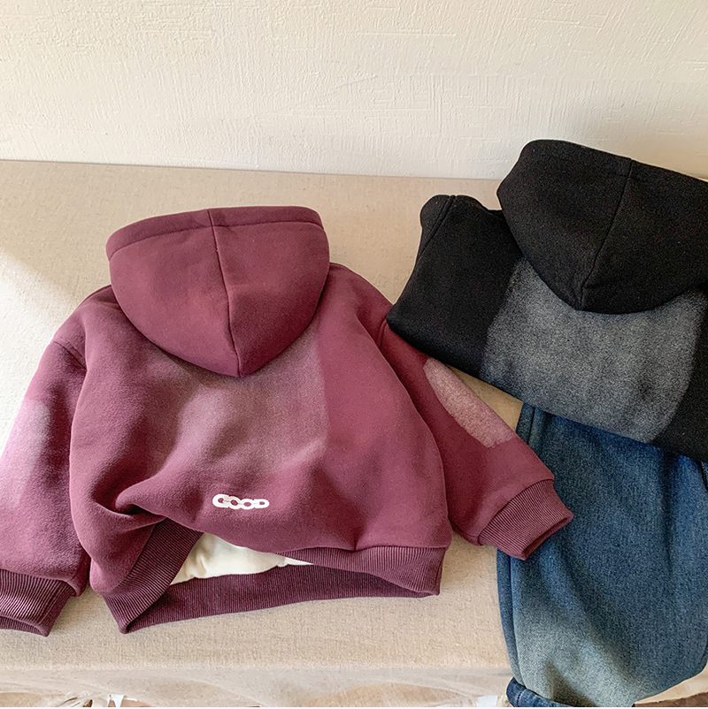 아동용 양털 스웨트 셔츠 재킷 2024 새로운 가을, 겨울 한국 스타일 서양식 아동용 소년 양털 두꺼운 스웨트 셔츠 유행스토어 가기