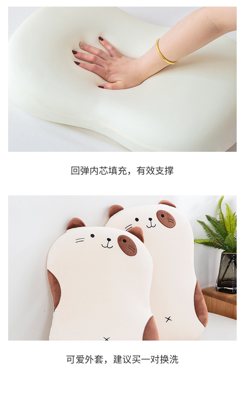 뚱뚱한 Du 고양이 가죽 베개 메모리 폼 베개 코어 파티션 느린 리바운드 변형 없음 자궁 경부 척추 보호 낮은 베개 수면 편안함