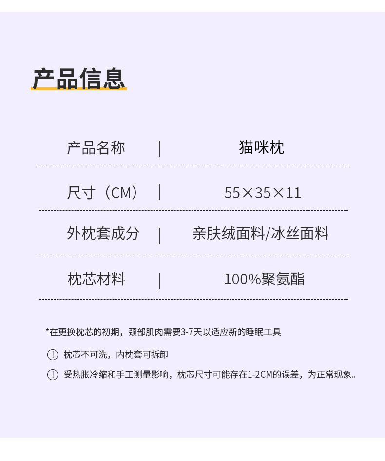 뚱뚱한 Du 고양이 가죽 베개 메모리 폼 베개 코어 파티션 느린 리바운드 변형 없음 자궁 경부 척추 보호 낮은 베개 수면 편안함스토어 가기