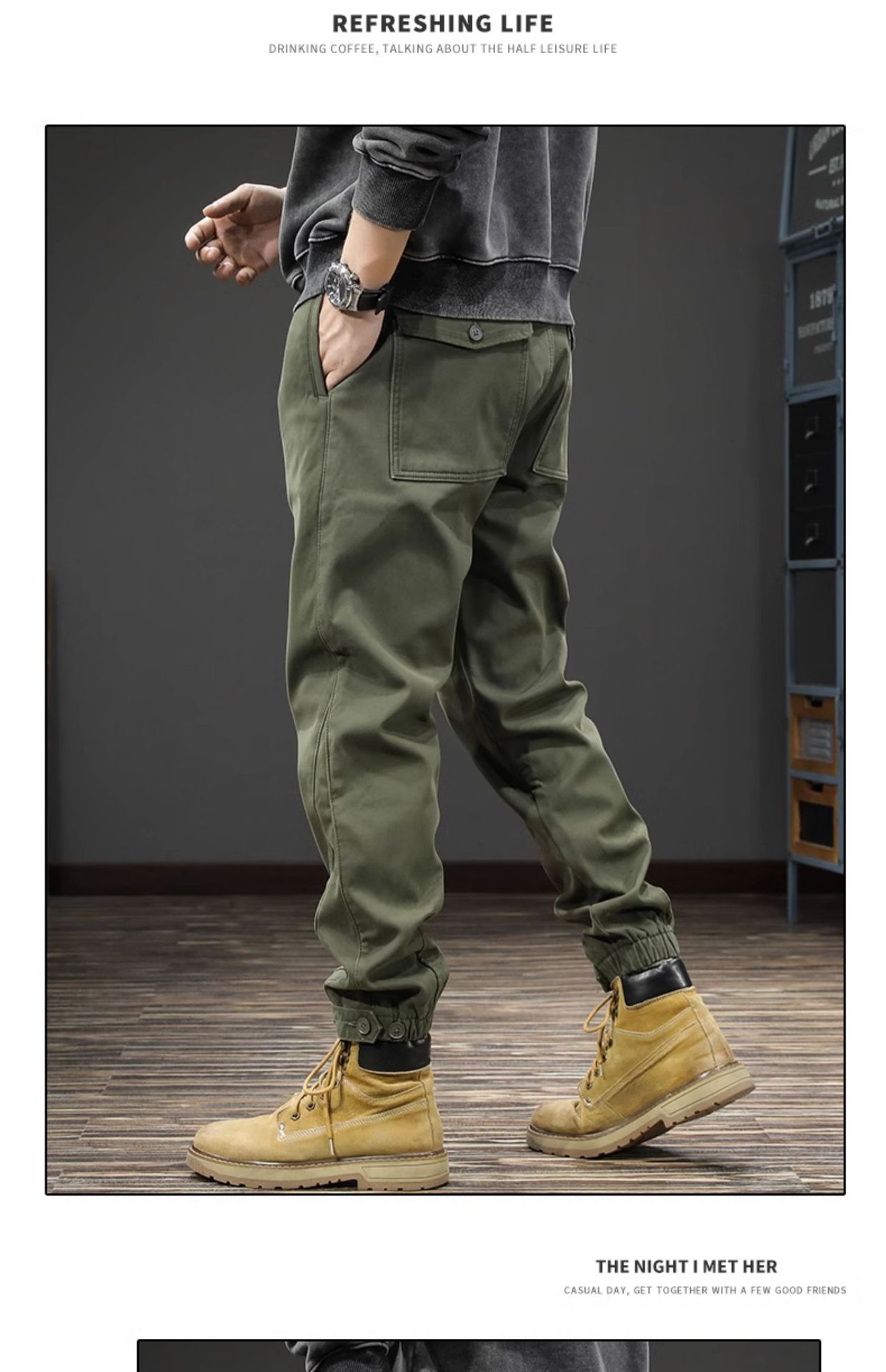 가을 새로운 헤비 레트로 다리 캐주얼 바지 남자 느슨한 플러스 사이즈 가을과 겨울 유행 브랜드 기능 스타일 할란 작업복