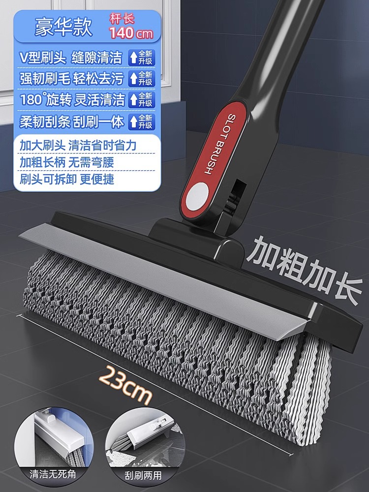 욕실 긴 손잡이 화장실 바닥 브러시 물 긁기 및 물 청소 이중 목적 단단한 머리 없음 사각 바닥 간격 욕실 청소 브러시