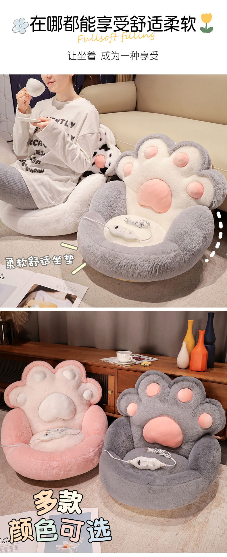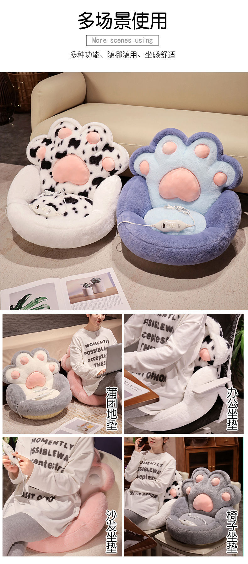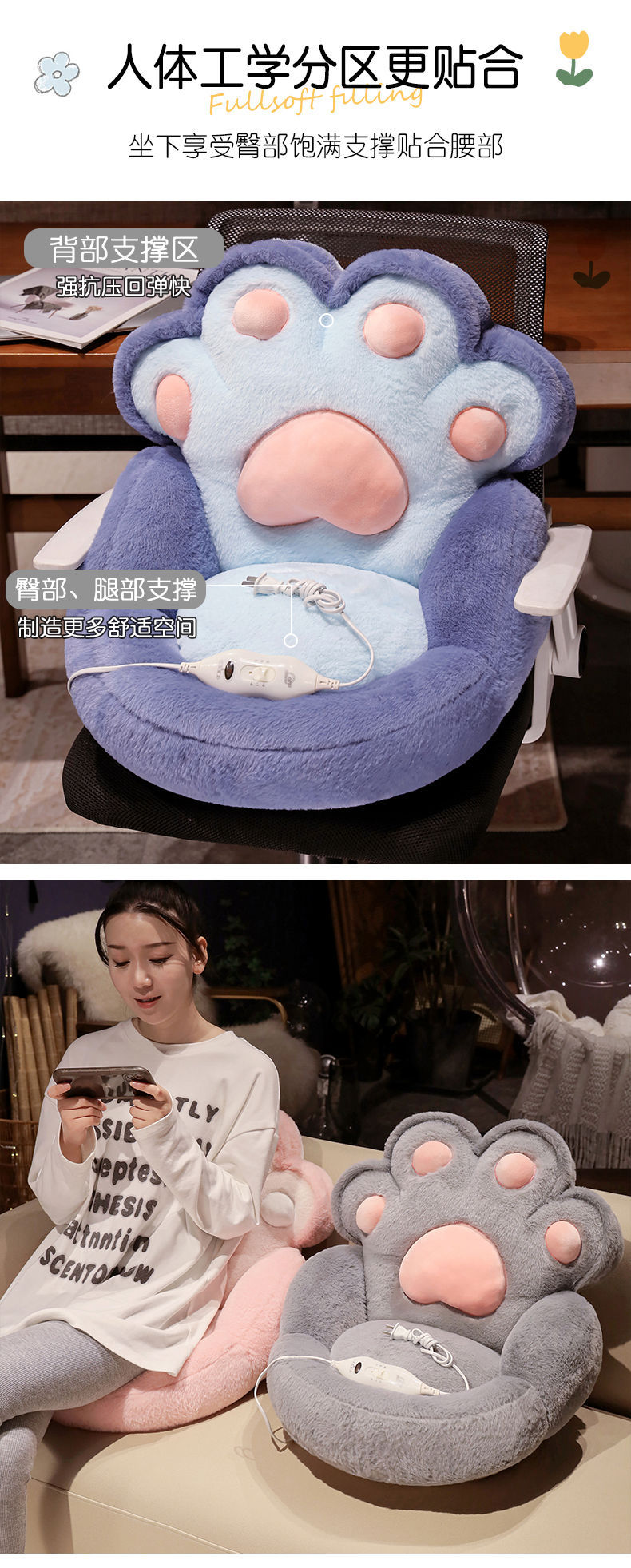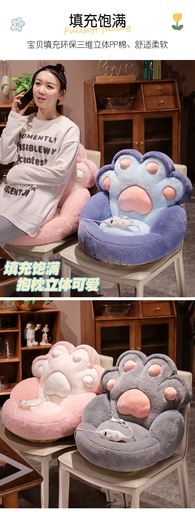 고양이 발 난방 쿠션 이불 쿠션 봉제 장난감 인형 도매 쿠션 학생 쿠션 베개 고양이 집
