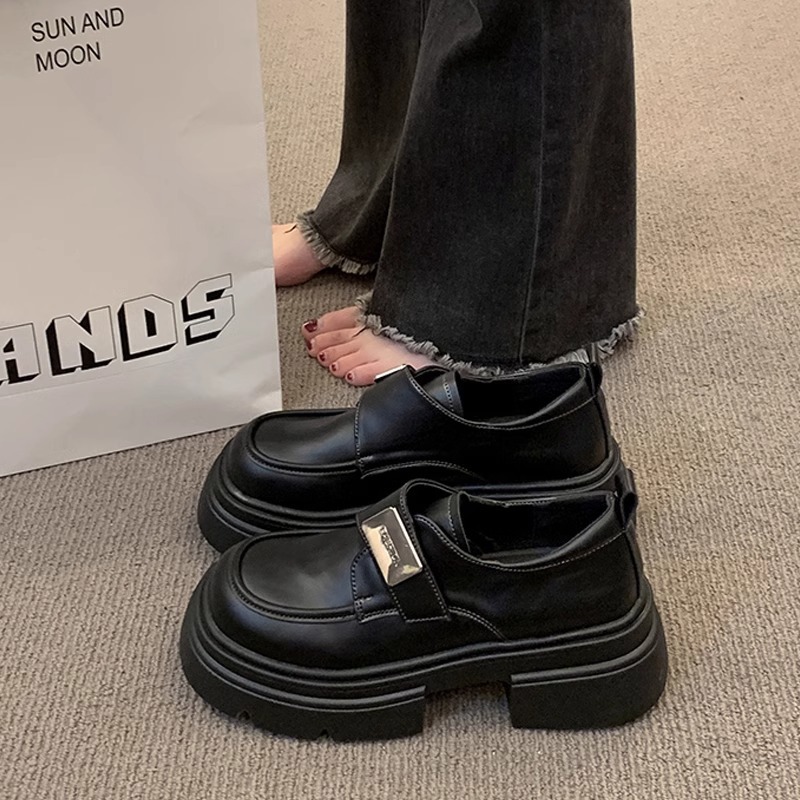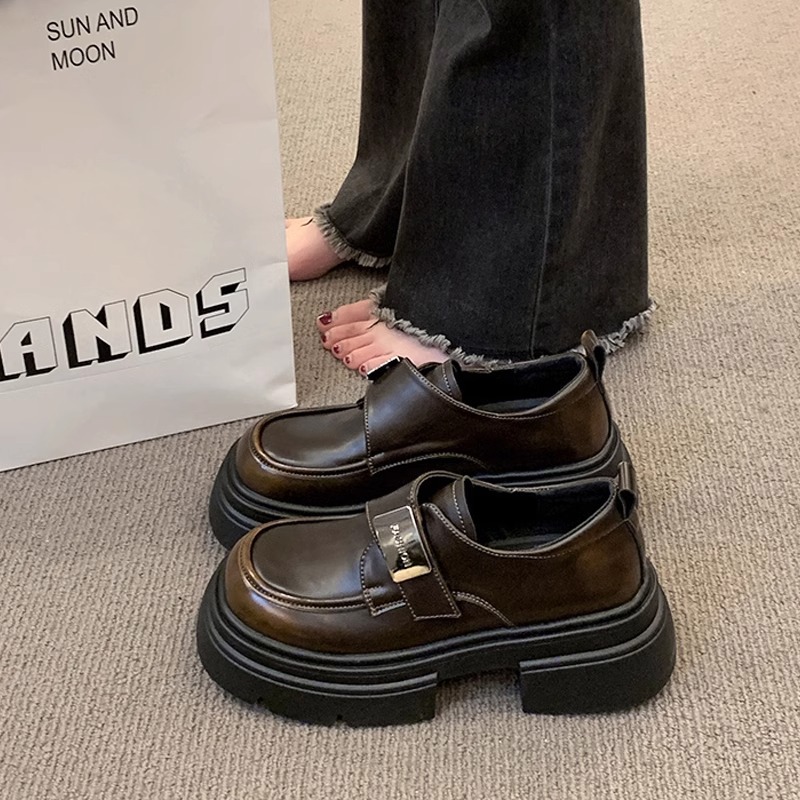 여성을위한 복고풍 작은 가죽 신발 2025 새로운 봄, 가을 슬립 온 로퍼 영국 스타일 작은 두꺼운 밑창 신발