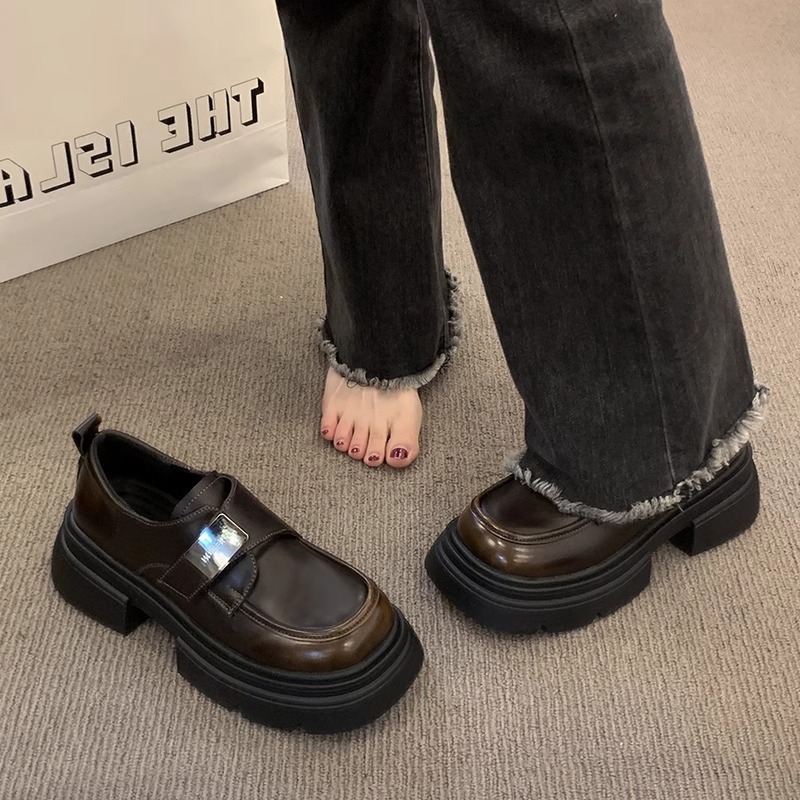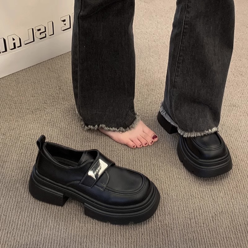 여성을위한 복고풍 작은 가죽 신발 2025 새로운 봄, 가을 슬립 온 로퍼 영국 스타일 작은 두꺼운 밑창 신발스토어 가기