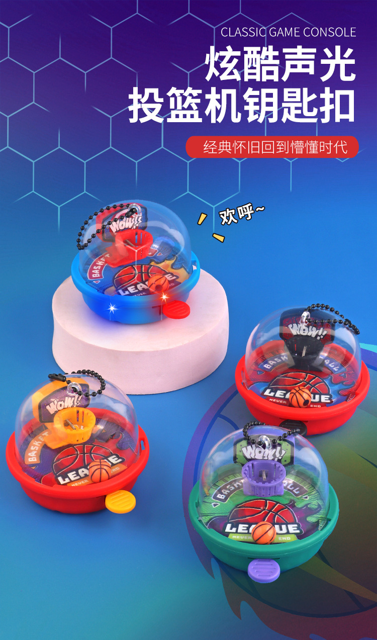 창조적 인 미니 데스크탑 휴대용 농구 기계 소리와 가벼운 게임 기계 감압 장난감 펜던트 키 체인 선물 도매